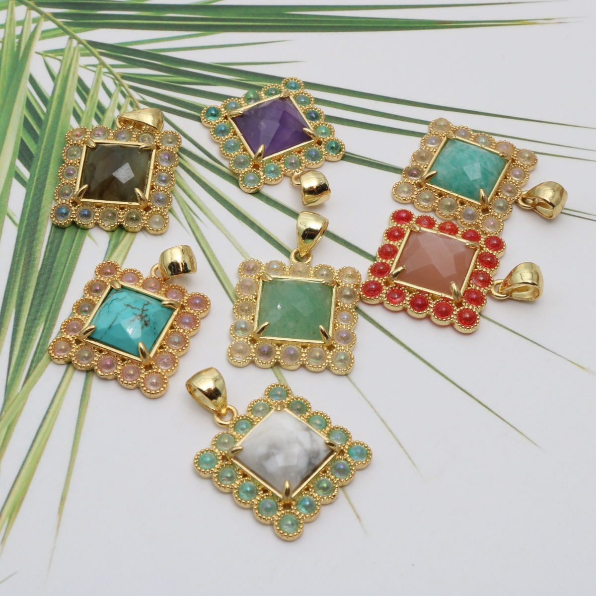 Gemstone Brass Pendants, Natural Stone, with Brass, plated, DIY & micro pave cubic zirconia