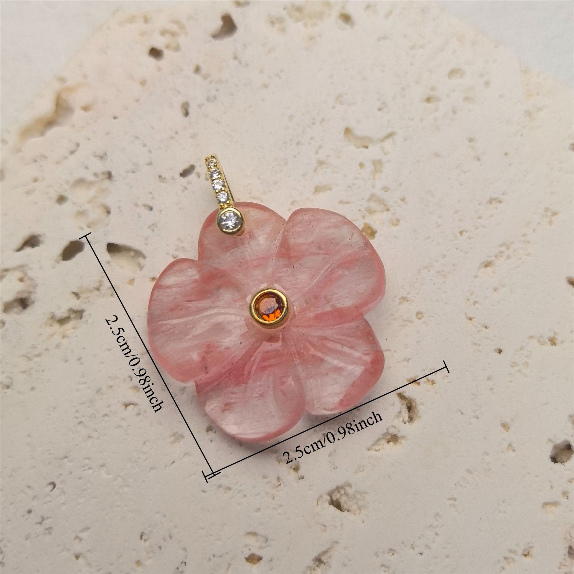 Gemstone Brass Pendants, with Brass, Flower, gold color plated, DIY & different materials for choice & micro pave cubic zirconia, 25x25mm, Sold By PC