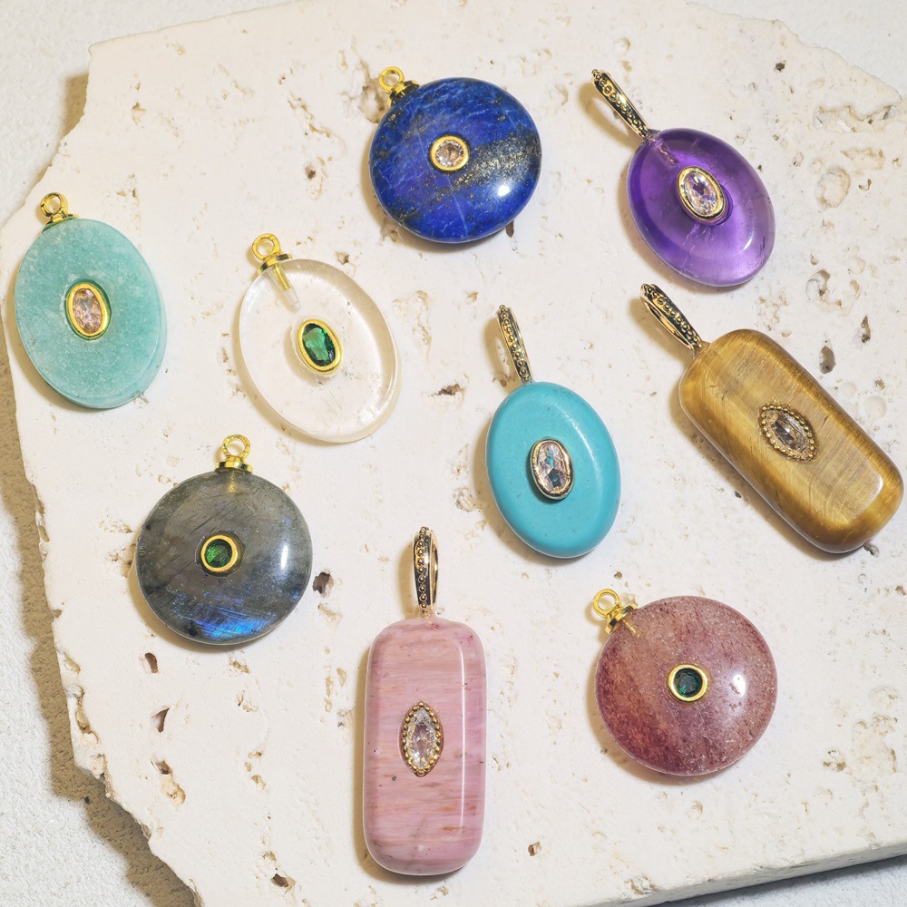 Gemstone Brass Pendants, with Brass, DIY