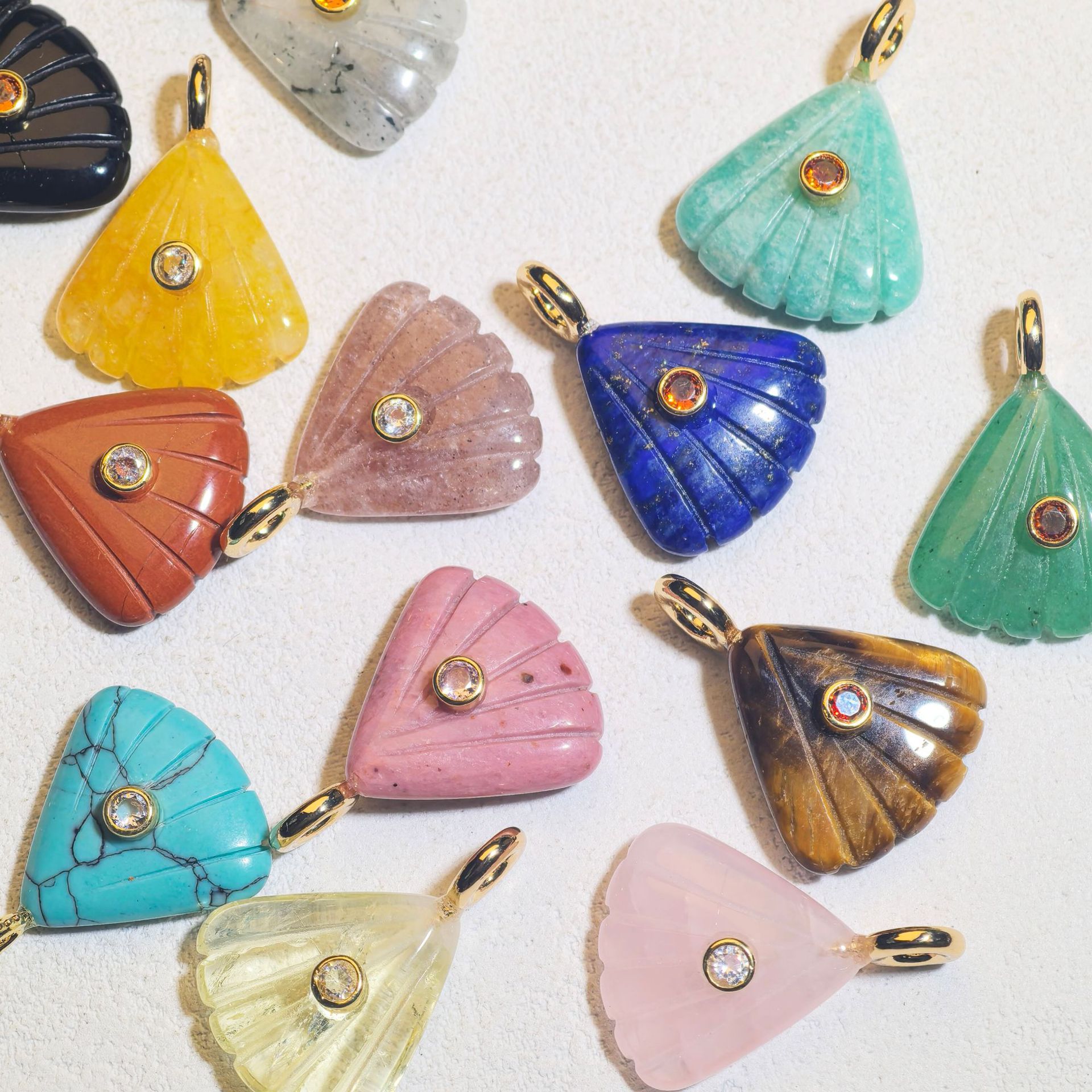 Gemstone Brass Pendants, with Brass, Shell, Carved, DIY & different materials for choice & micro pave cubic zirconia, 23x30mm, Sold By PC