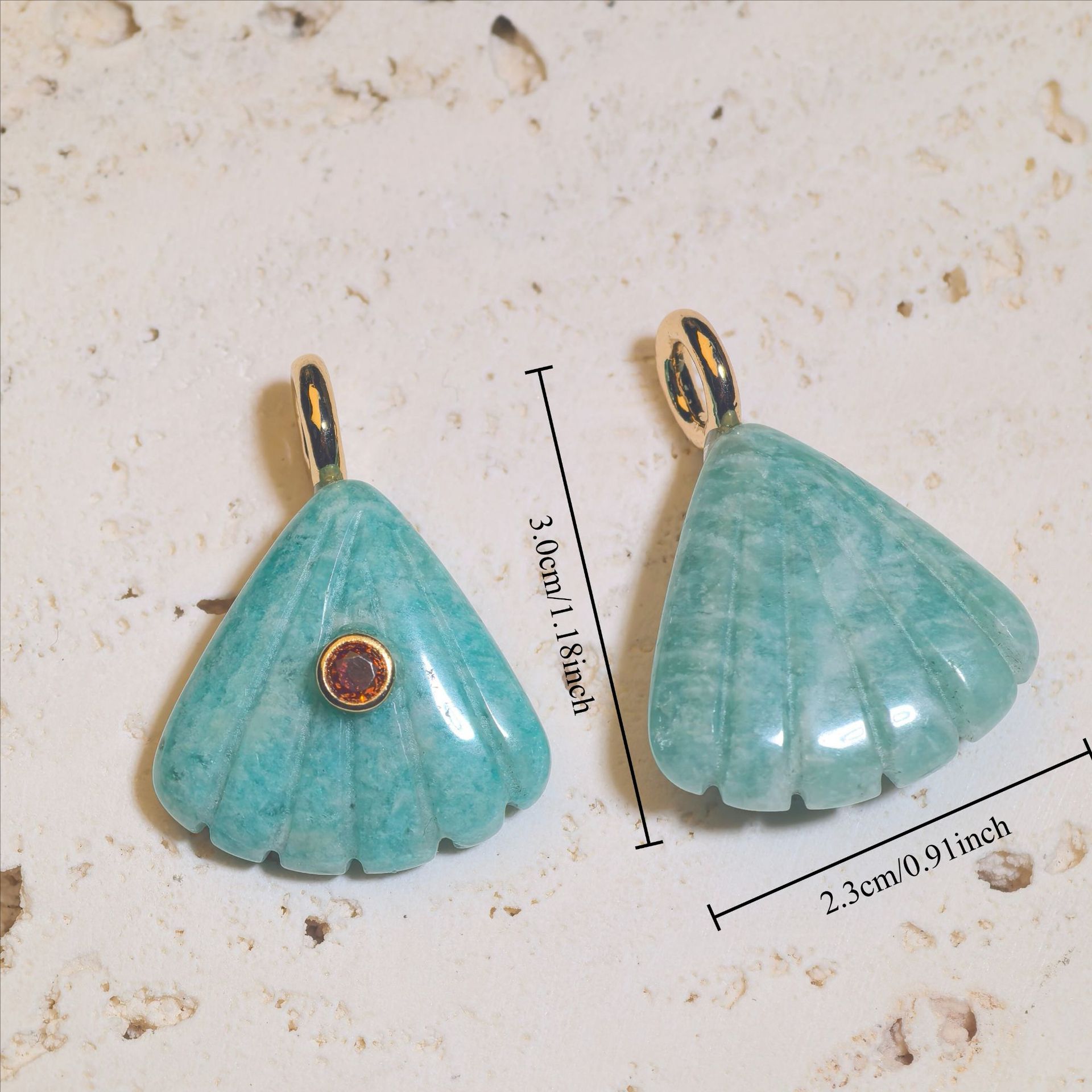 Gemstone Brass Pendants, with Brass, Conch, gold color plated, DIY & micro pave cubic zirconia