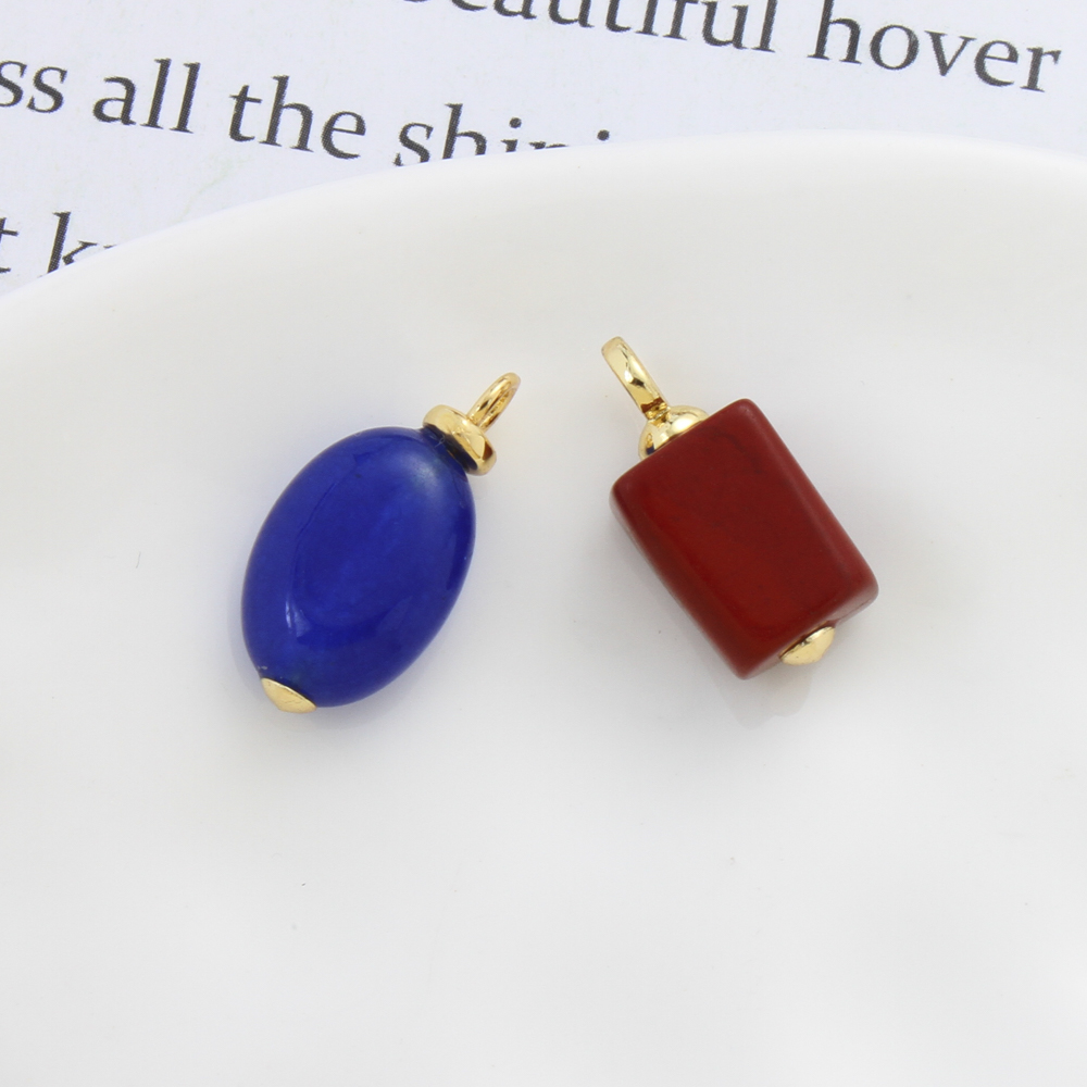 Gemstone Brass Pendants, with Gemstone, plated, DIY, more colors for choice, nickel, lead & cadmium free, 19.7x10x6mm, Sold By PC