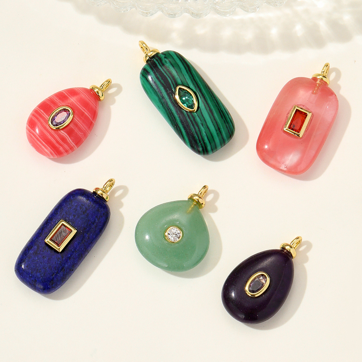 Gemstone Brass Pendants, Natural Stone, with Brass, plated, DIY & micro pave cubic zirconia