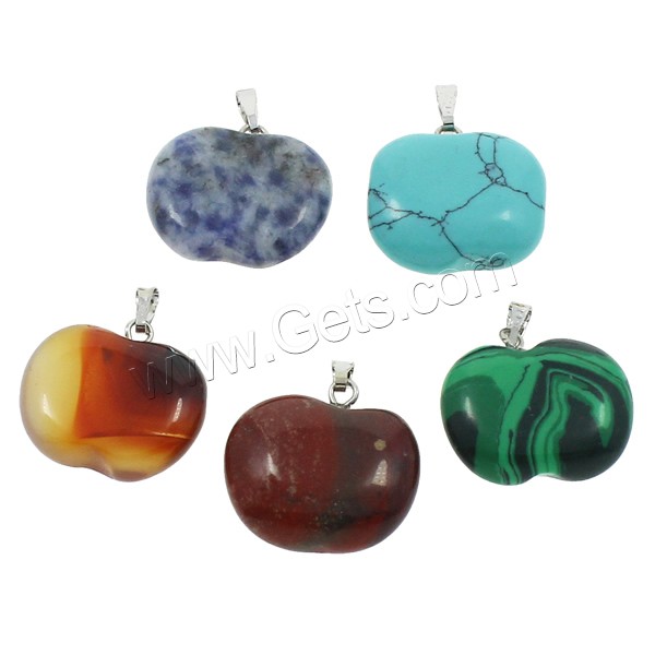 Gemstone Brass Pendants, with brass bail, Apple, natural, different materials for choice, 20x19x7mm, Hole:Approx 2x4mm, Sold By PC