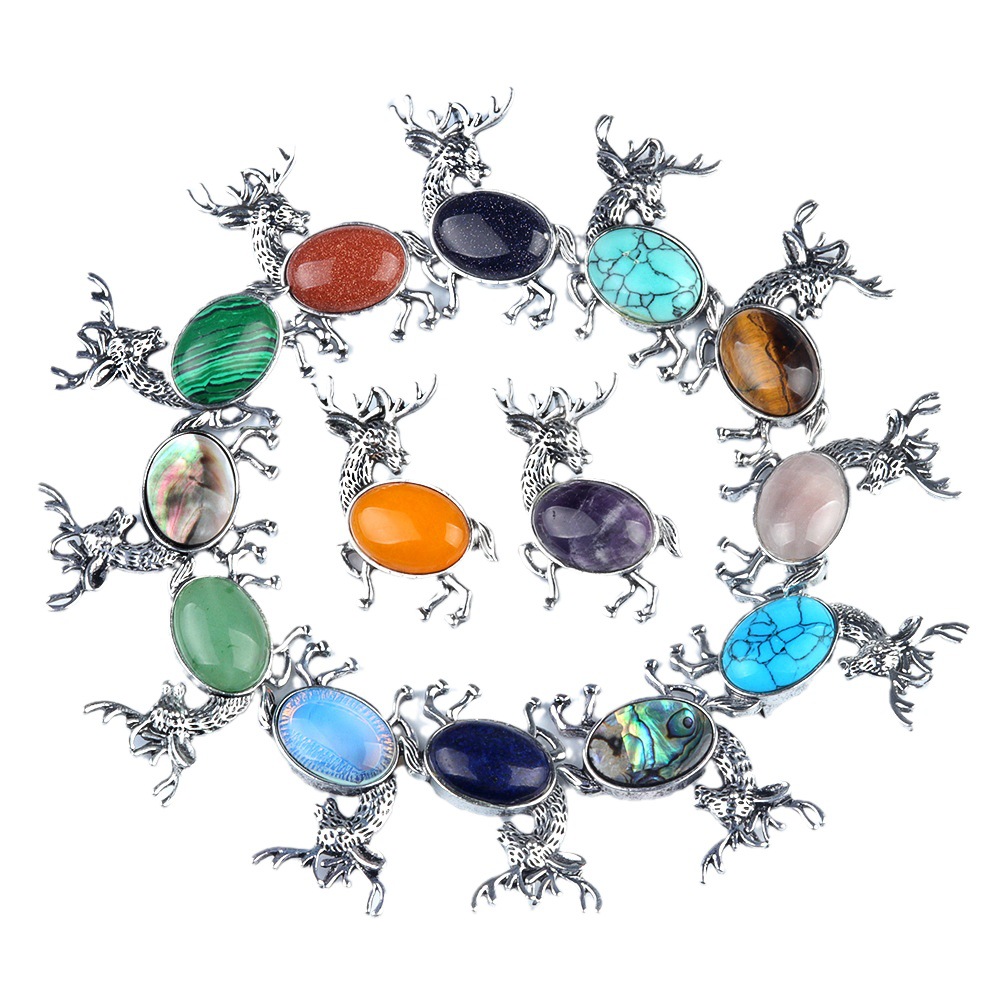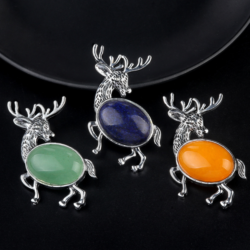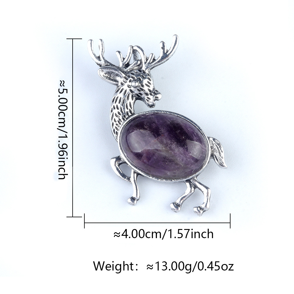 Gemstone Brooch, Zinc Alloy, with Natural Stone, Deer, silver color plated, fashion jewelry & different materials for choice, more colors for choice, Sold By PC