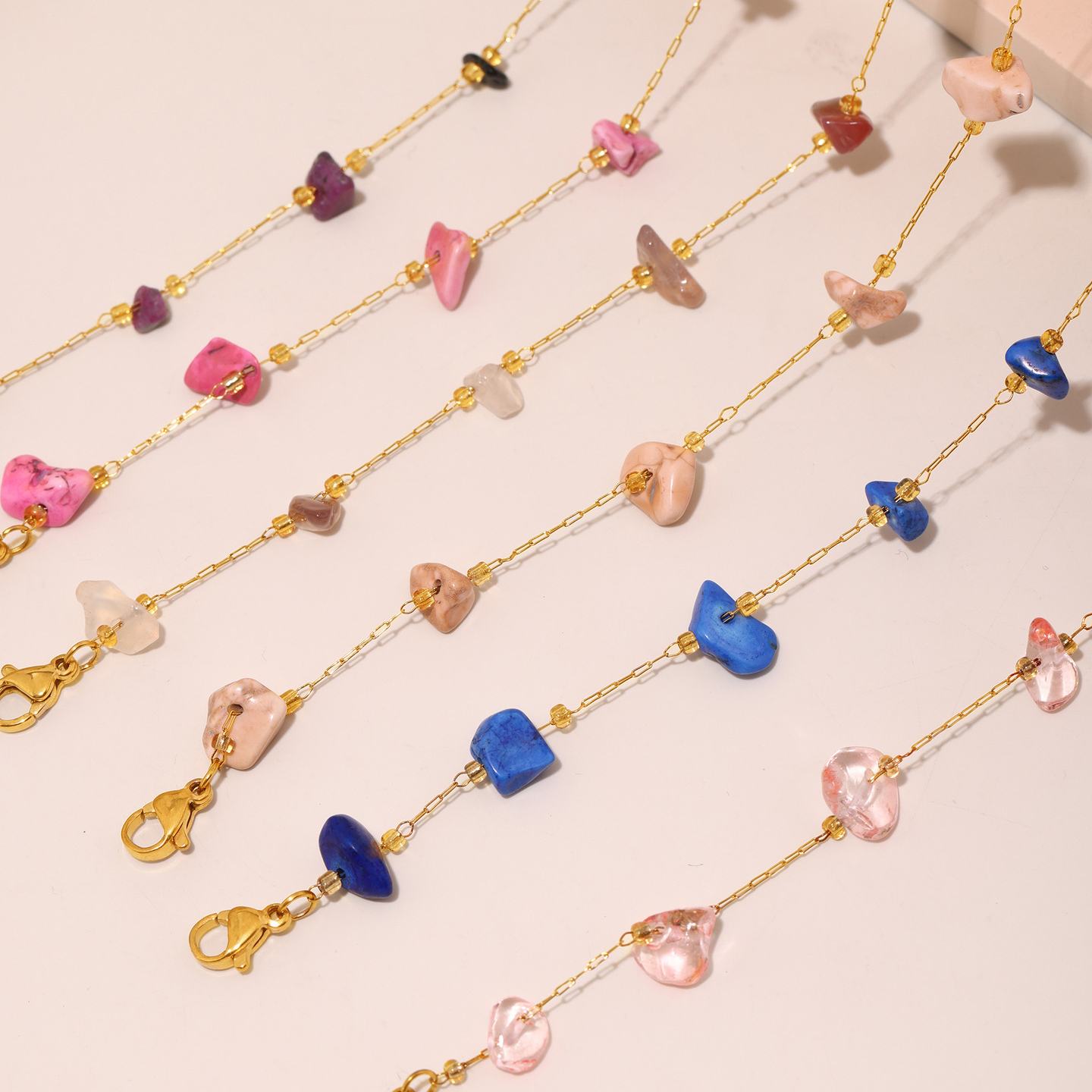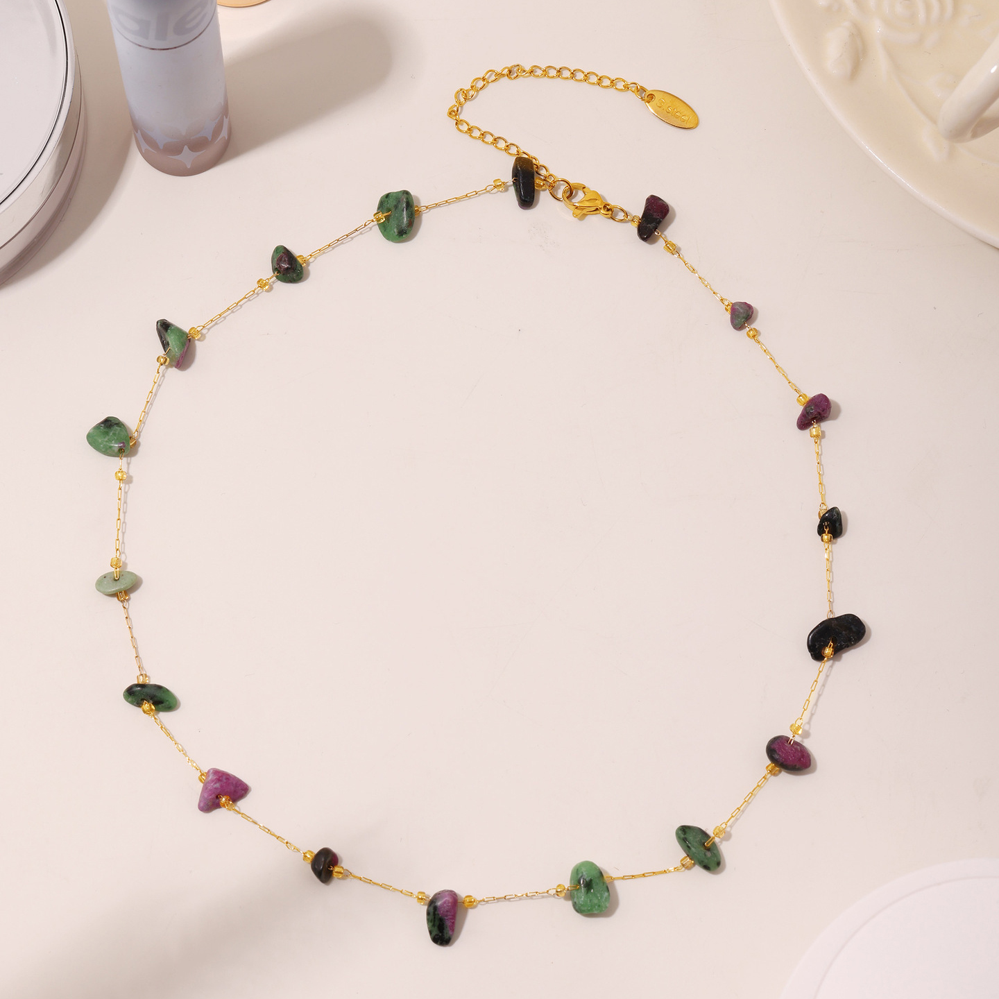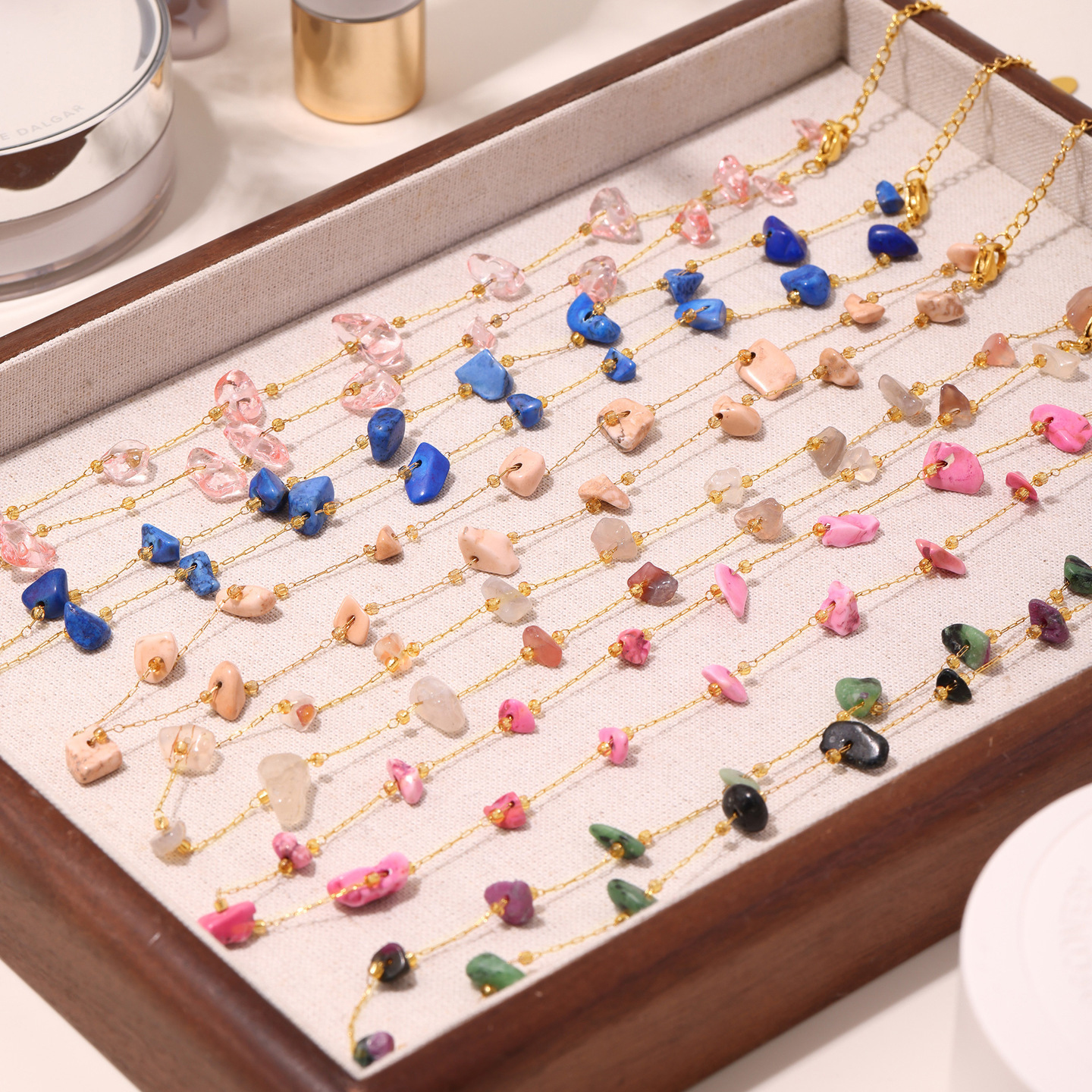 Gemstone Chip Necklaces, 304 Stainless Steel, with Natural Stone, gold color plated, fashion jewelry & for woman, more colors for choice, Sold By PC