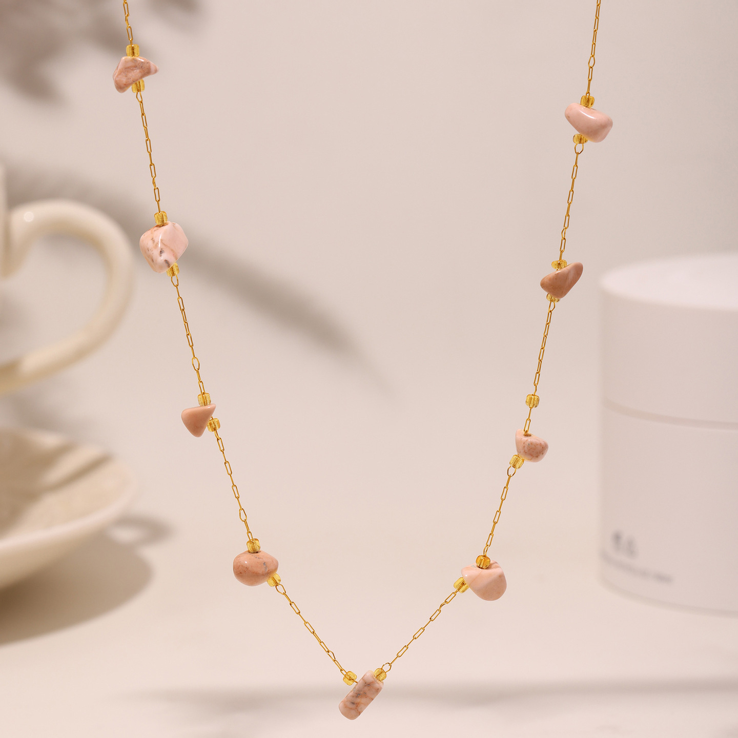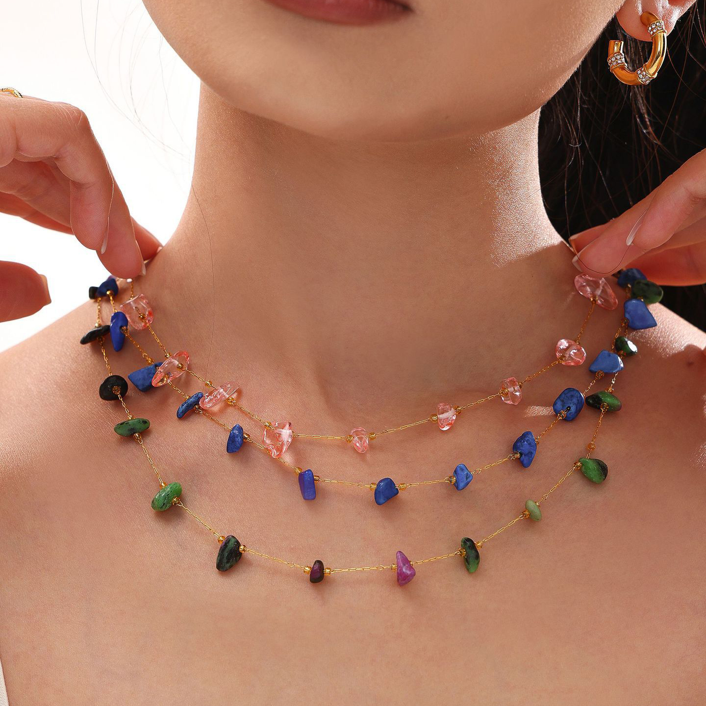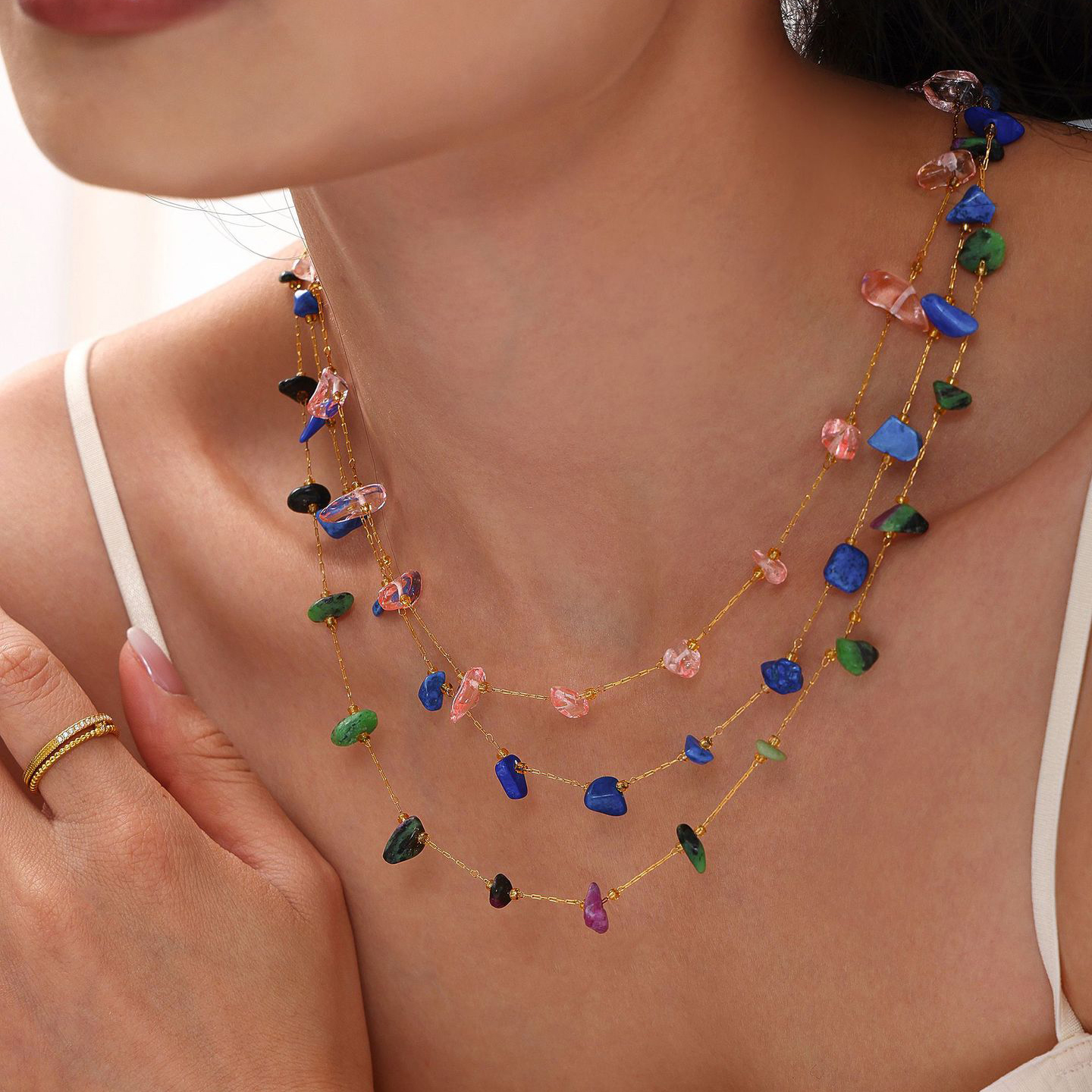 Gemstone Chip Necklaces, 304 Stainless Steel, with Natural Stone, gold color plated, fashion jewelry & for woman, more colors for choice, Sold By PC