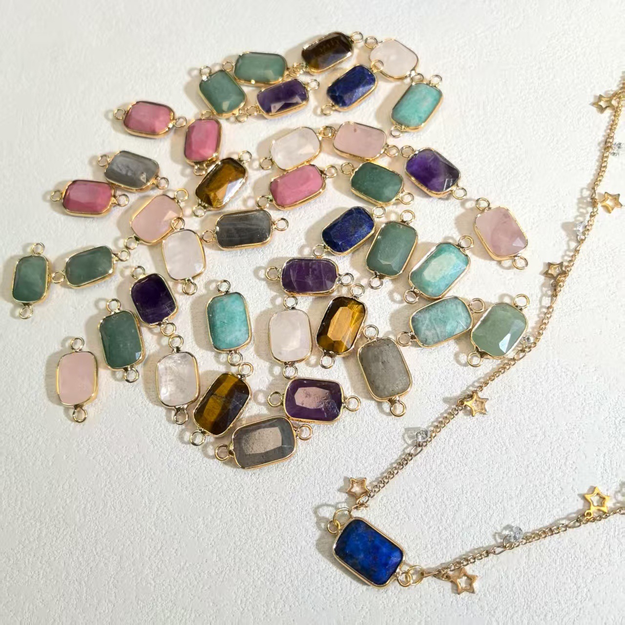 Gemstone Connector, with Brass, gold color plated, DIY & faceted