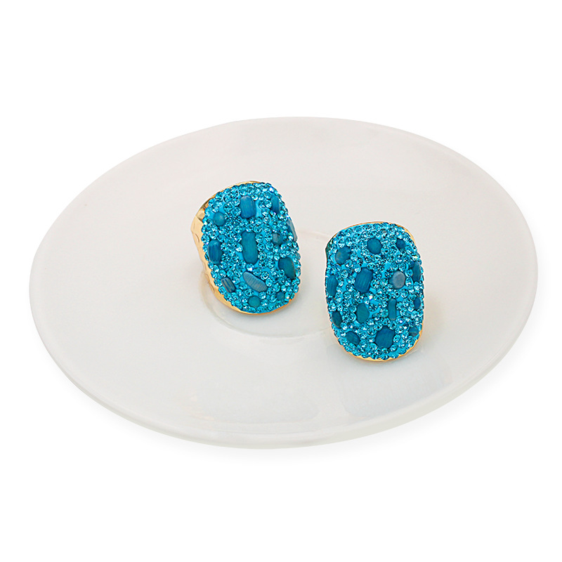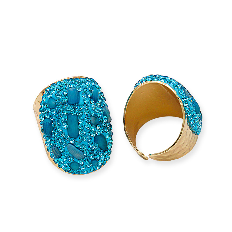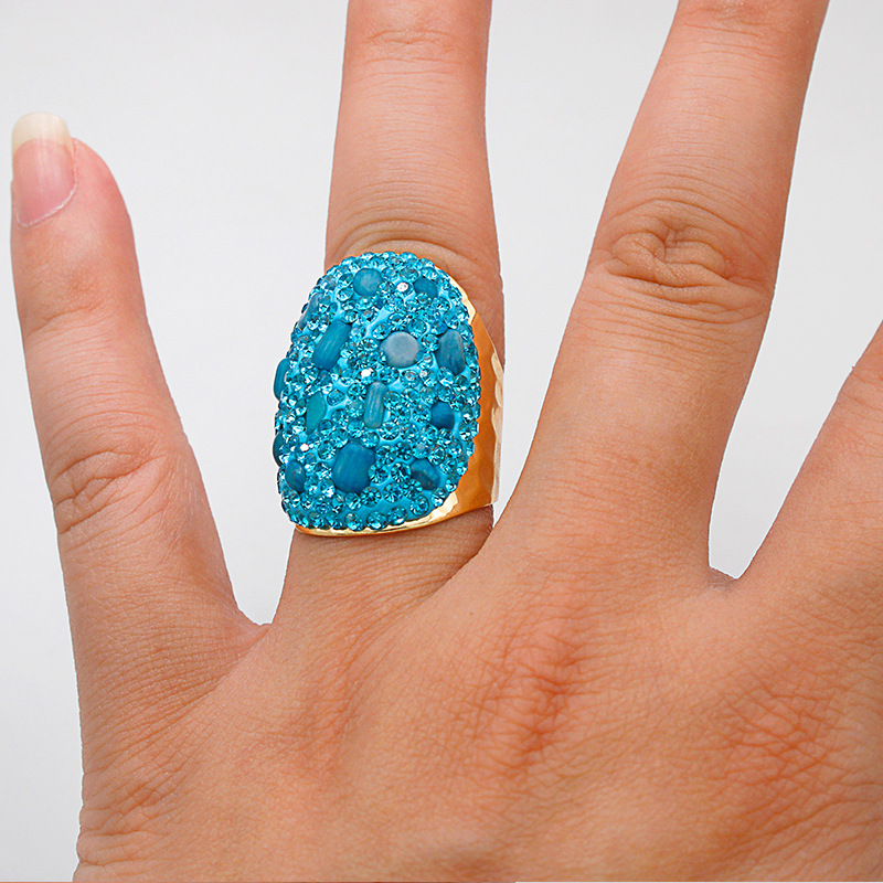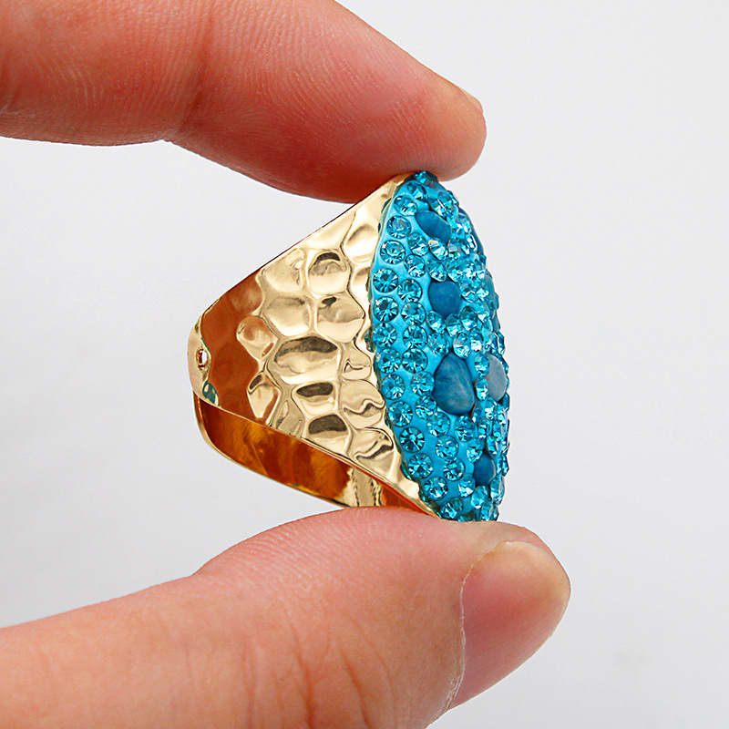 Gemstone Finger Ring, Brass, with Synthetic Coral, gold color plated, for woman & with rhinestone, blue, inner diameter:17~20mm, Sold By PC