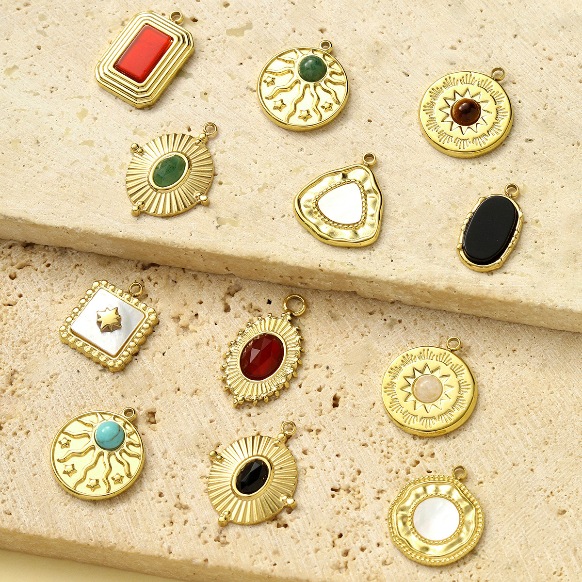 Gemstone Jewelry Pendant, gold color plated, DIY