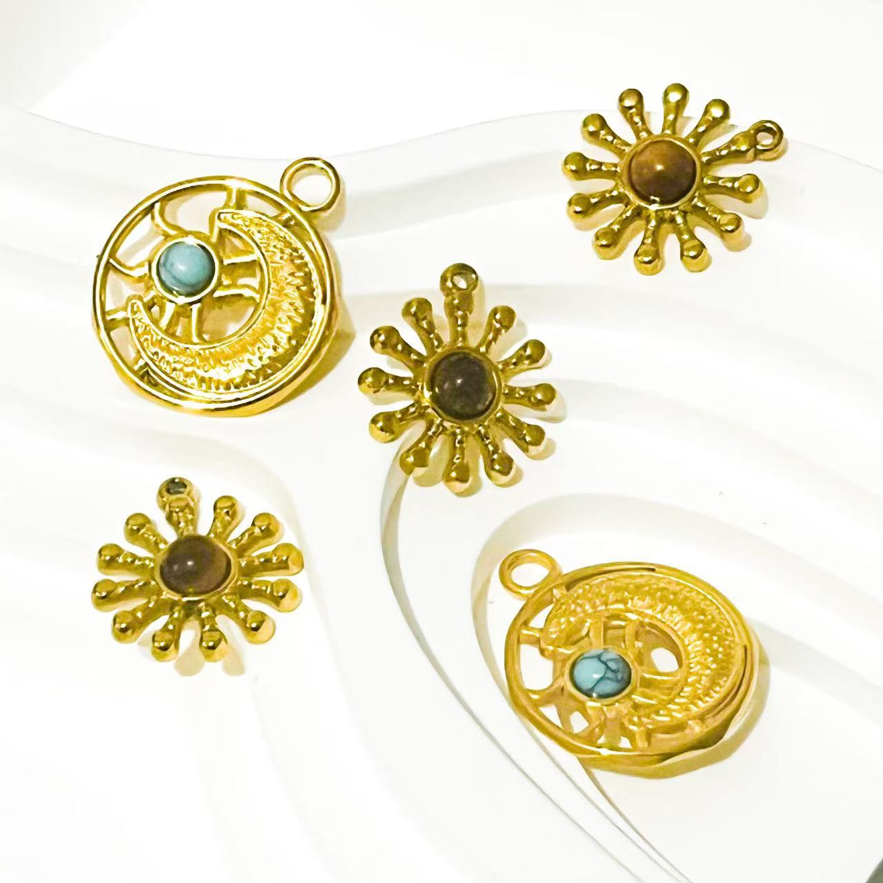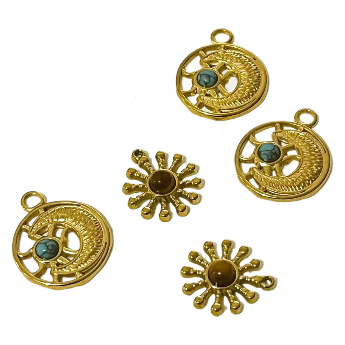 Gemstone Jewelry Pendant, 304 Stainless Steel, with Tiger Eye & Synthetic Turquoise, gold color plated, DIY, more colors for choice, Sold By PC