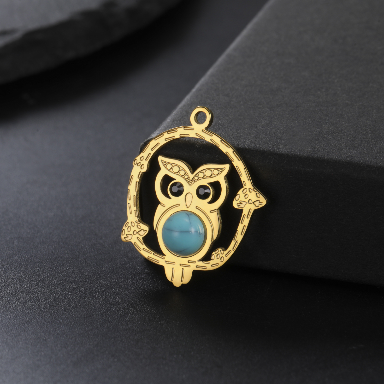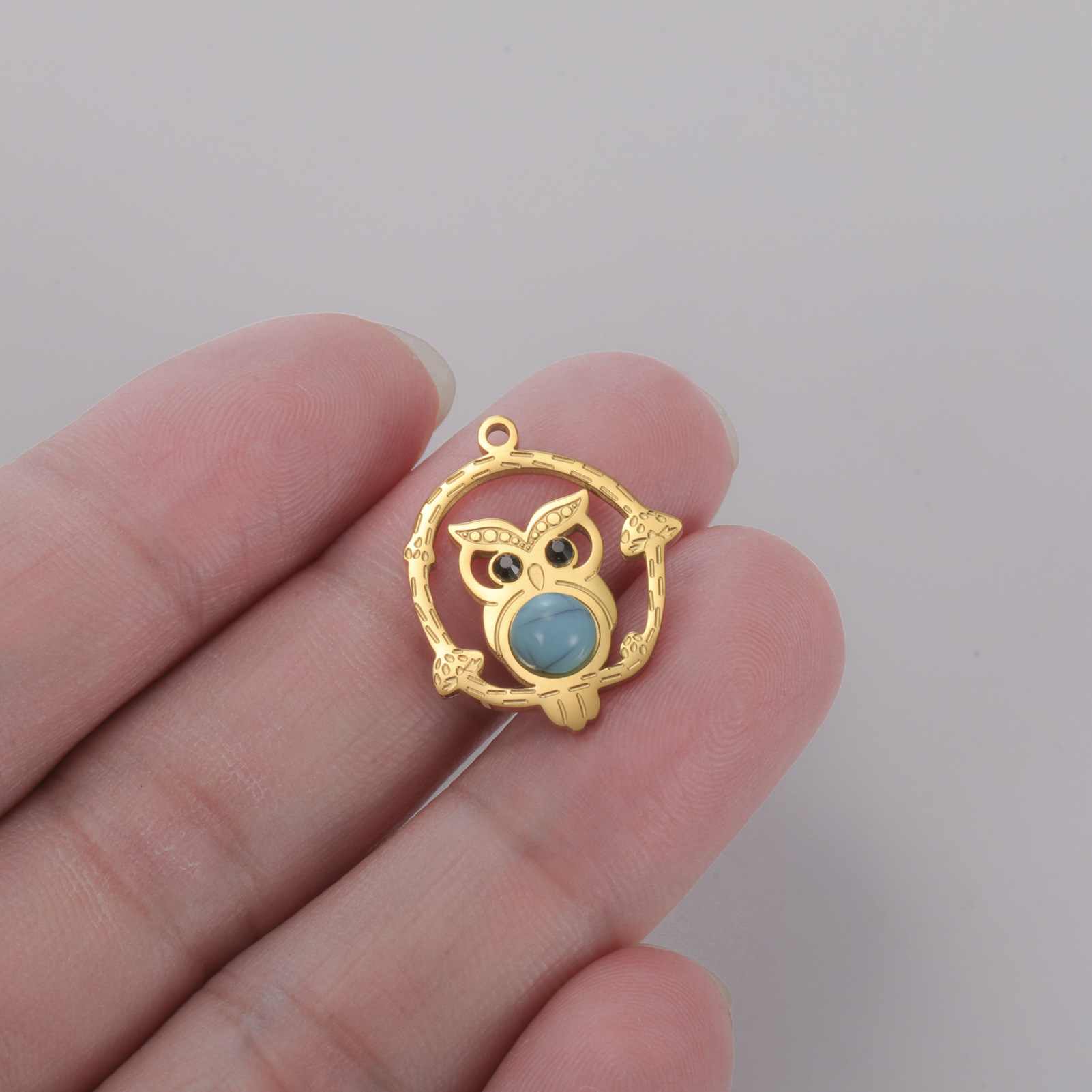 Gemstone Jewelry Pendant, 304 Stainless Steel, with Gemstone, Owl, plated, DIY & hollow, more colors for choice, 19x24mm, 10PCs/Bag, Sold By Bag