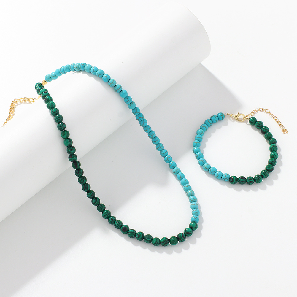 Gemstone Necklaces, Malachite, with turquoise, vintage & different styles for choice & for woman, dark green, Sold By PC