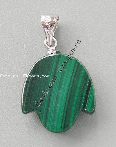 Malachite Pendants, with Zinc Alloy, silver color plated, DIY green