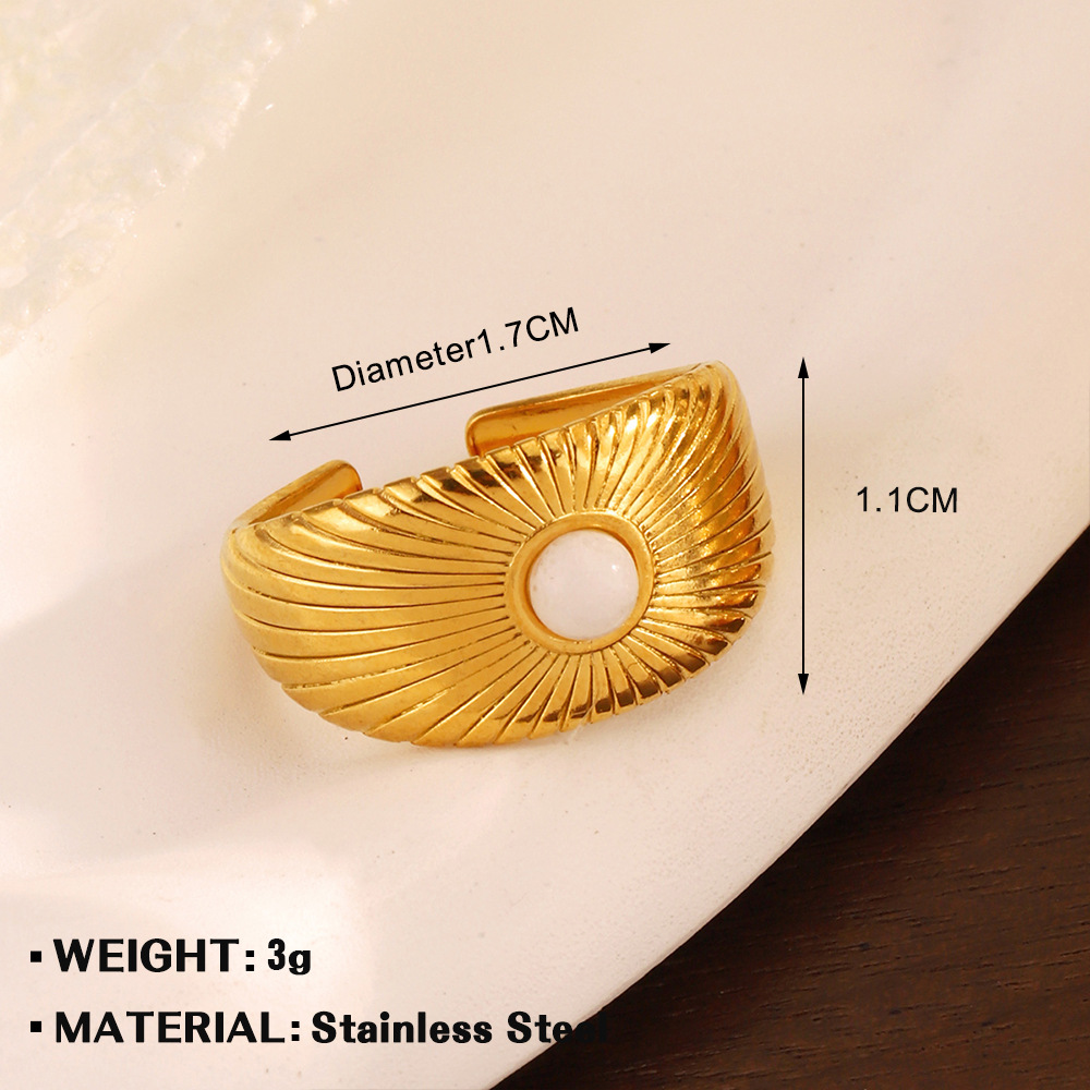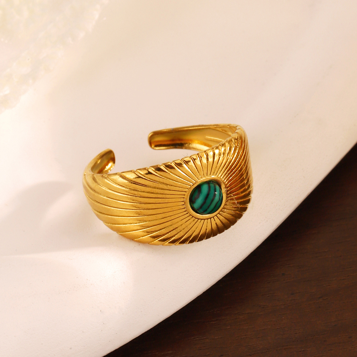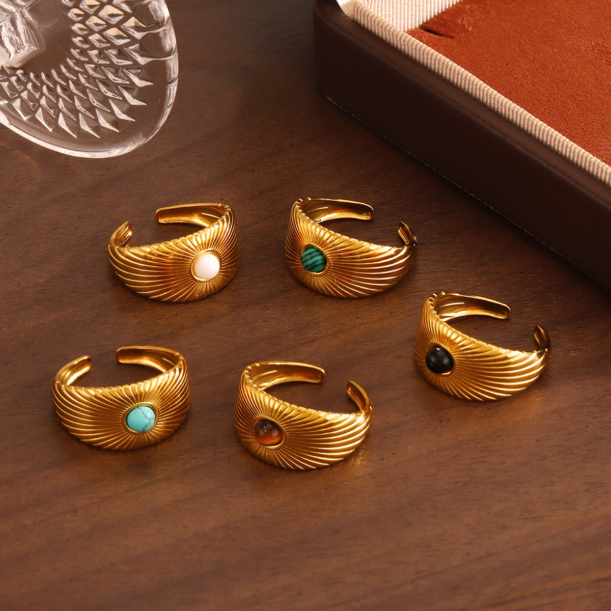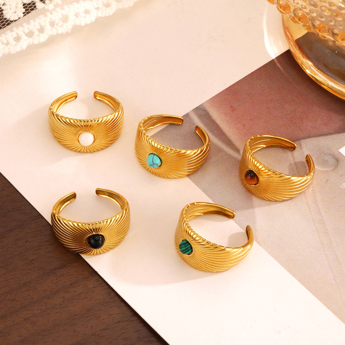 Gemstone Stainless Steel Finger Ring, 304 Stainless Steel, with Natural Stone, plated, fashion jewelry & different materials for choice & for woman, golden, Sold By PC
