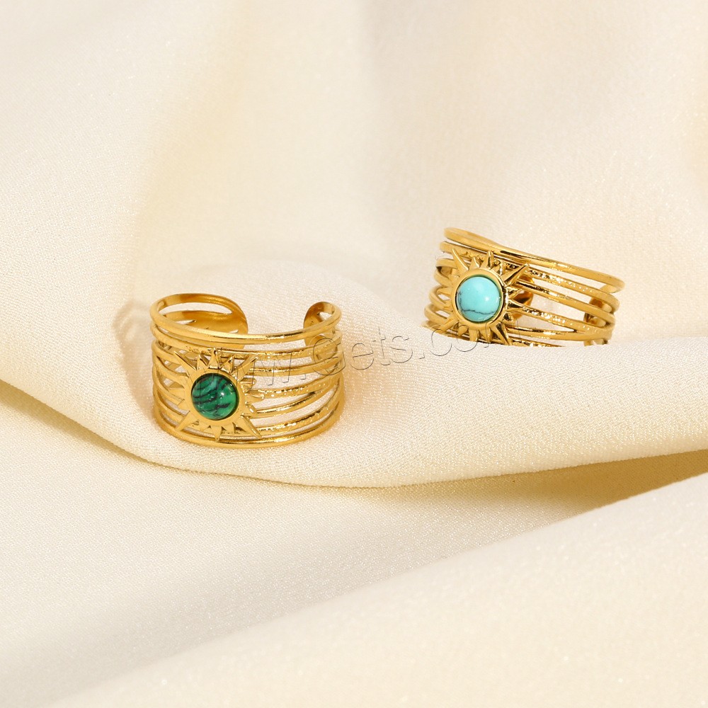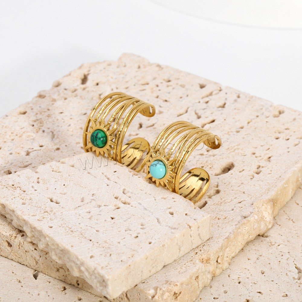 Gemstone Stainless Steel Finger Ring, 304 Stainless Steel, with Natural Stone, Geometrical Pattern, real gold plated, different materials for choice & adjustable & for woman & hollow, 12mm, Sold By PC