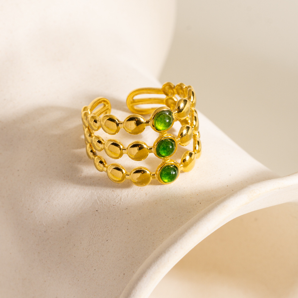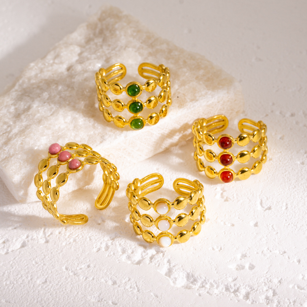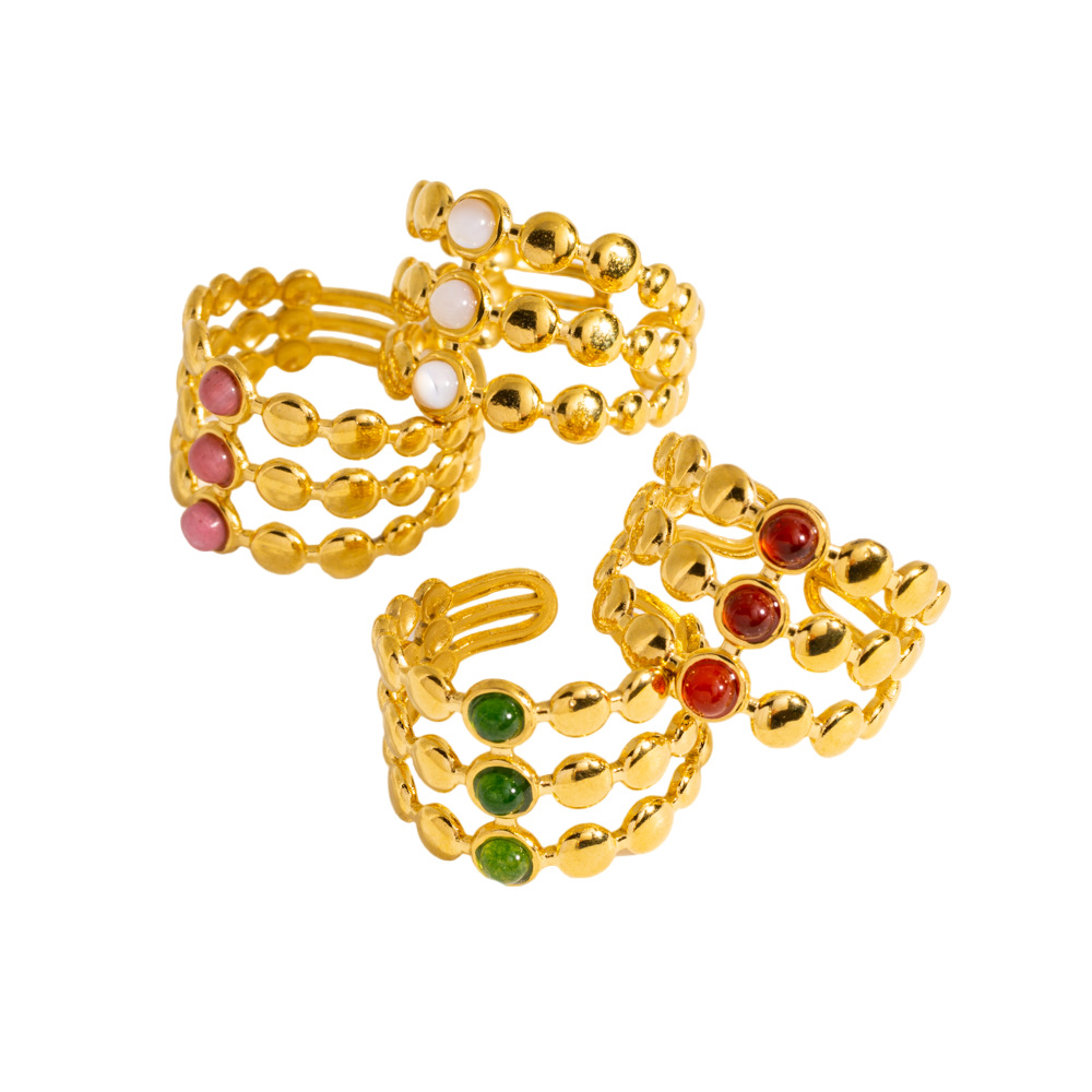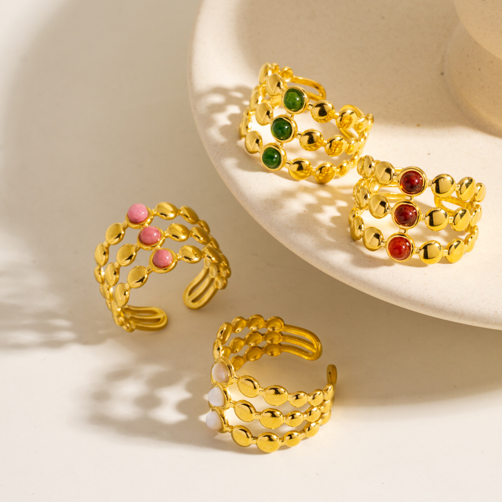 Gemstone Stainless Steel Finger Ring, 304 Stainless Steel, with Natural Stone, gold color plated, different materials for choice & for woman, more colors for choice, Sold By PC