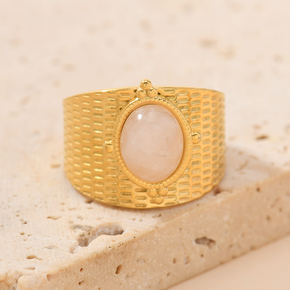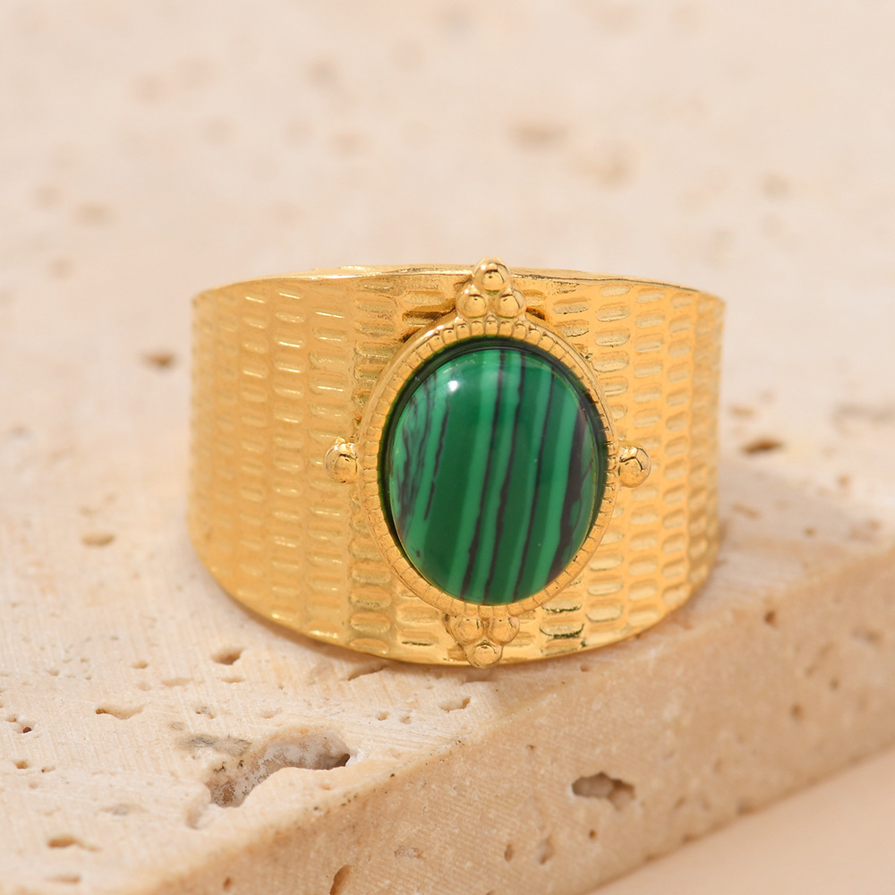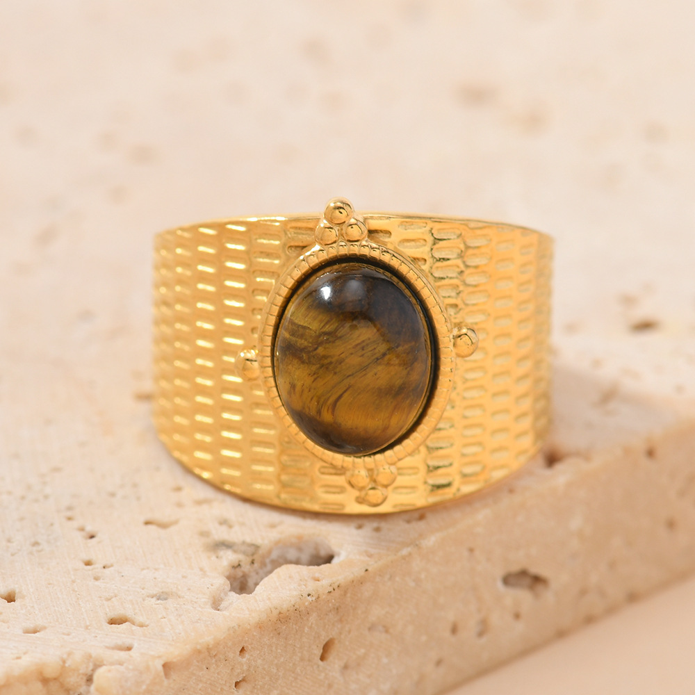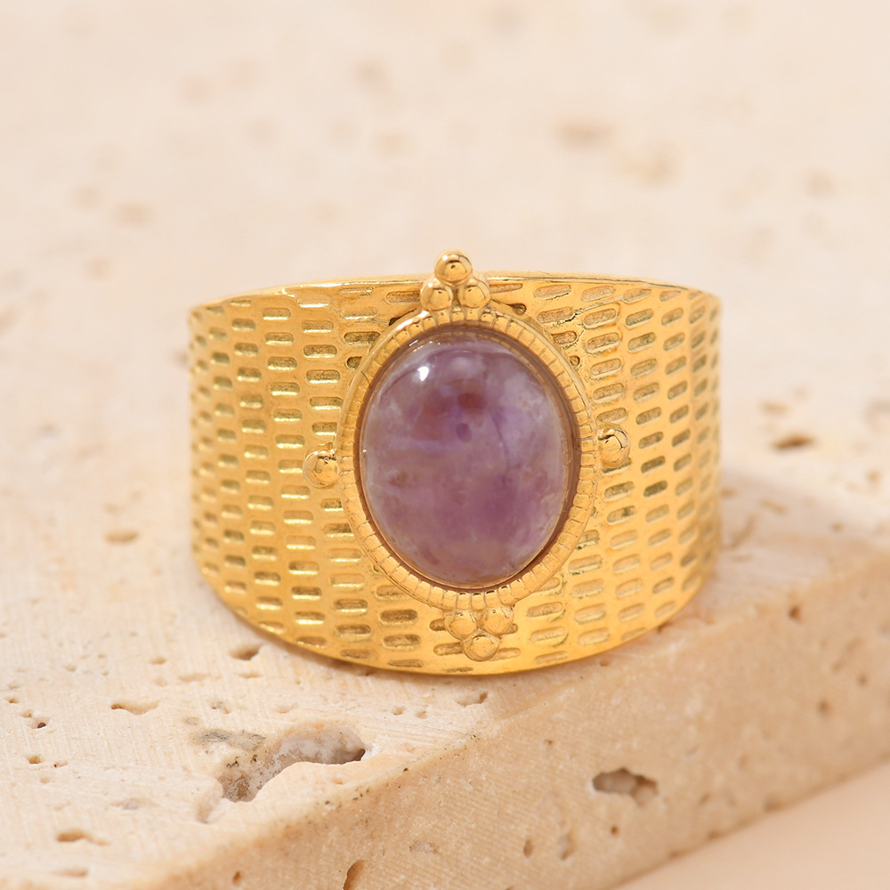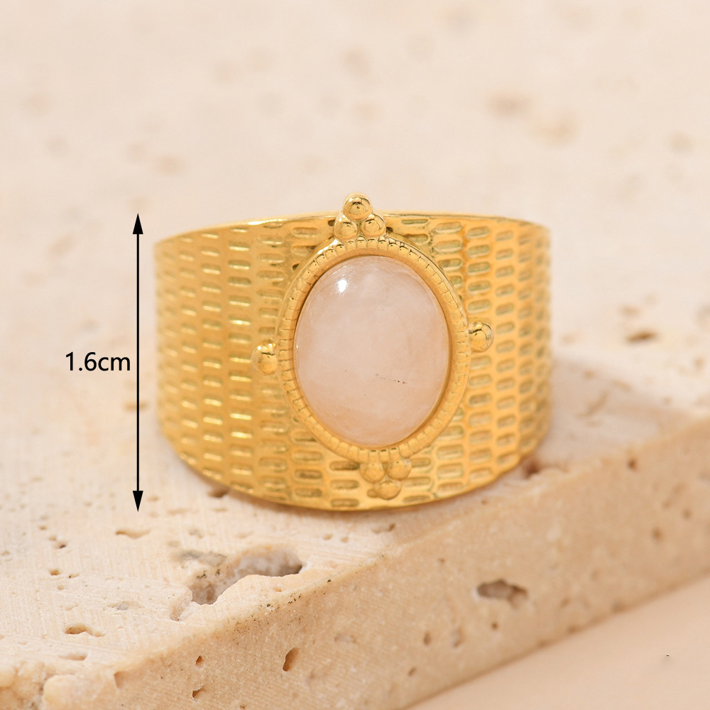 Gemstone Stainless Steel Finger Ring, 304 Stainless Steel, with Natural Stone, 18K gold plated, fashion jewelry & different materials for choice & Unisex, more colors for choice, US Ring Size:8, Sold By PC