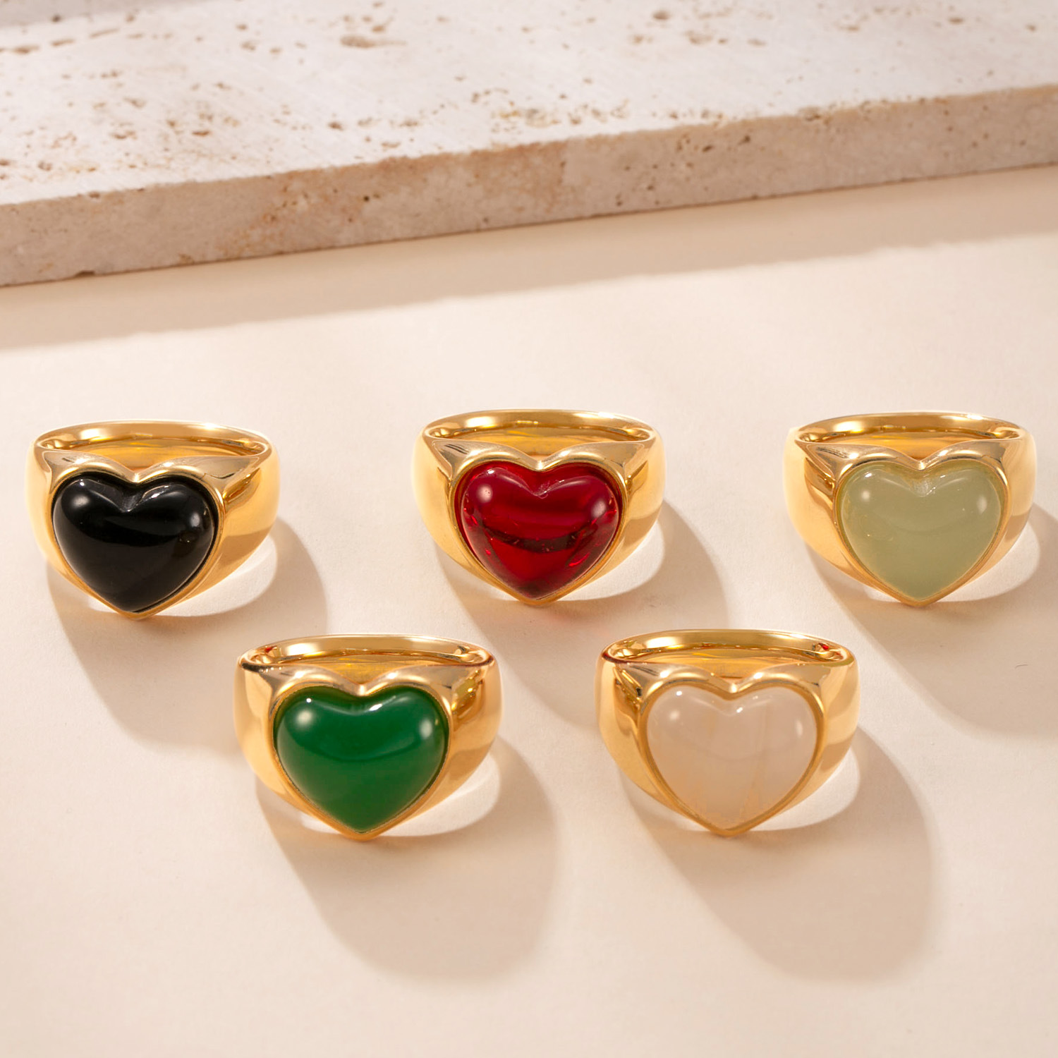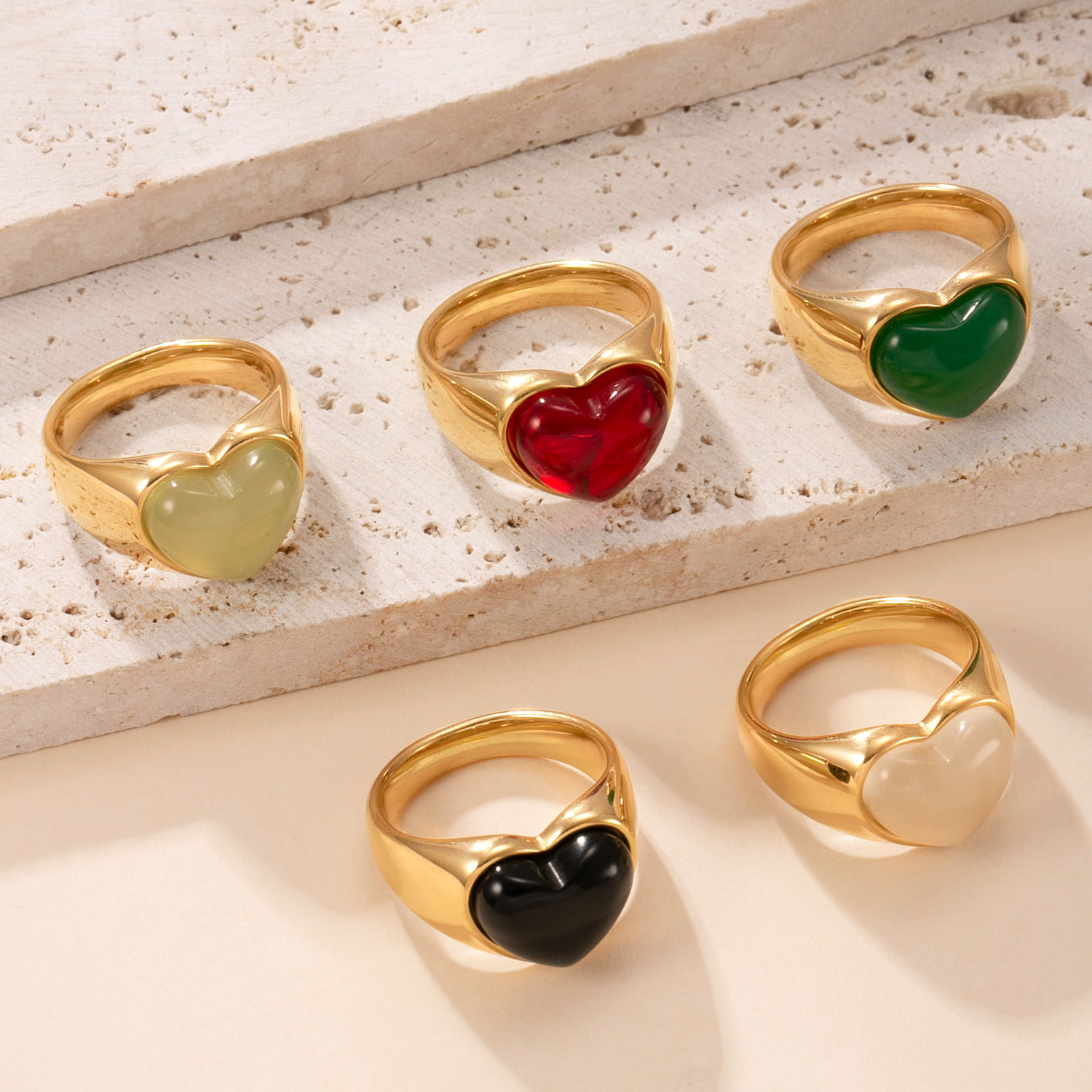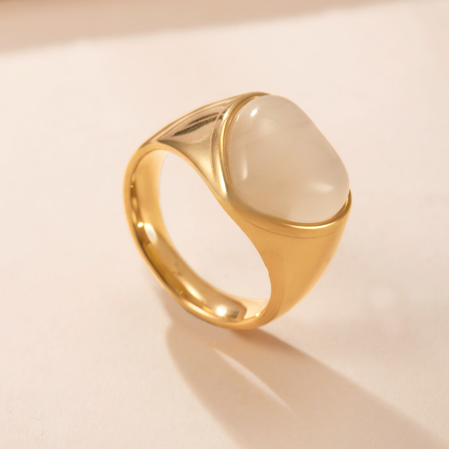 Gemstone Stainless Steel Finger Ring, 304 Stainless Steel, with Natural Stone, gold color plated, different materials for choice & different size for choice & for woman, more colors for choice, Sold By PC
