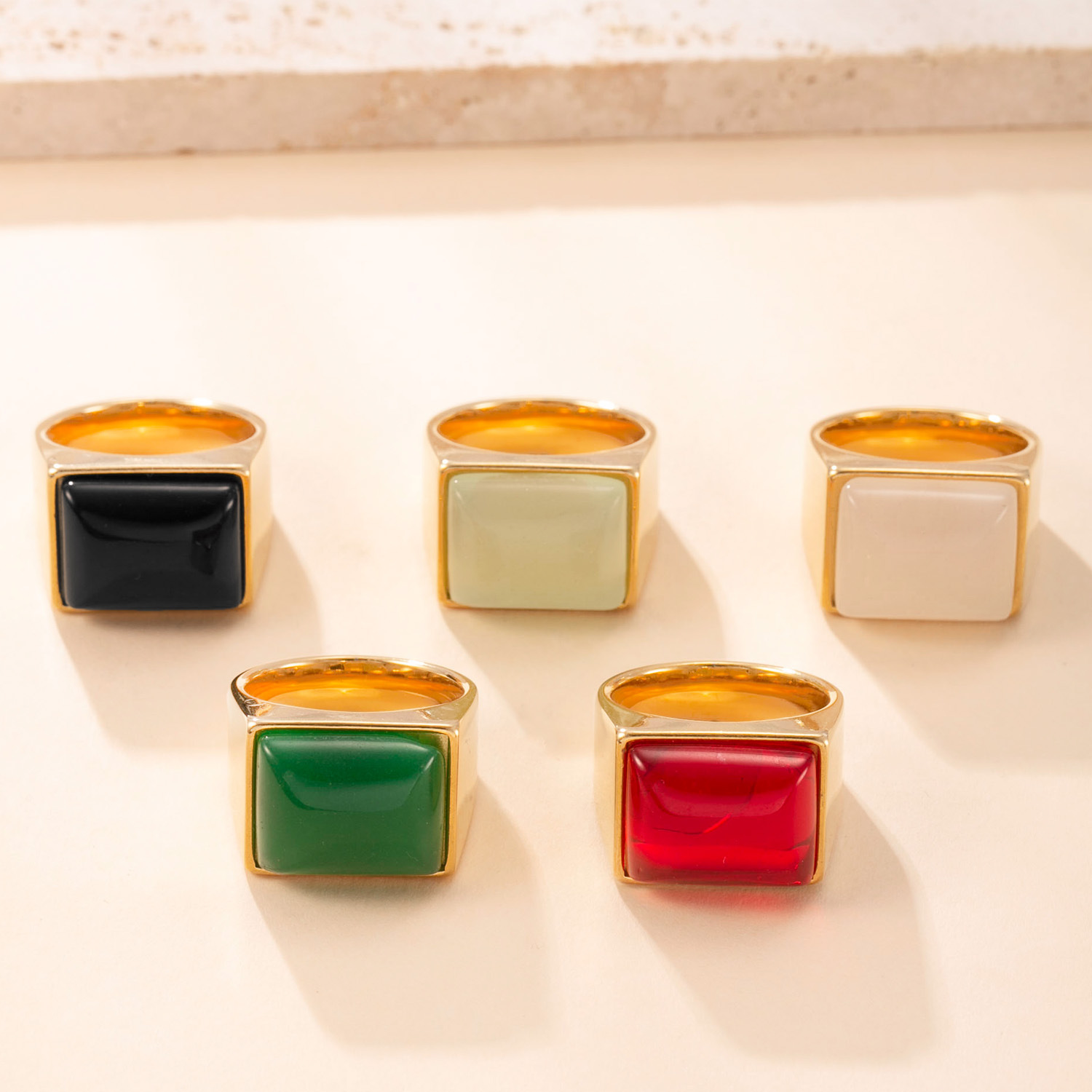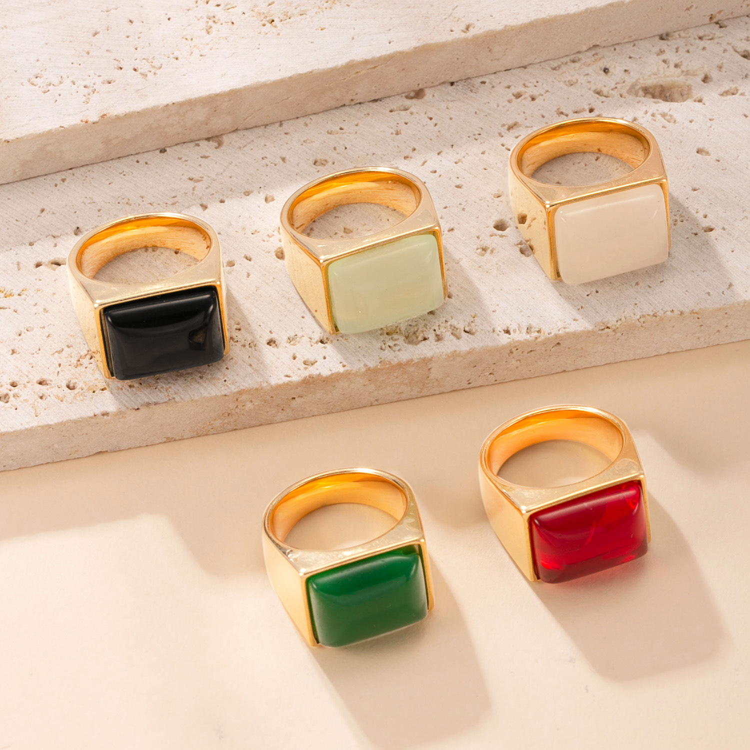 Gemstone Stainless Steel Finger Ring, 304 Stainless Steel, with Natural Stone, gold color plated, different materials for choice & different size for choice & for woman, more colors for choice, Sold By PC