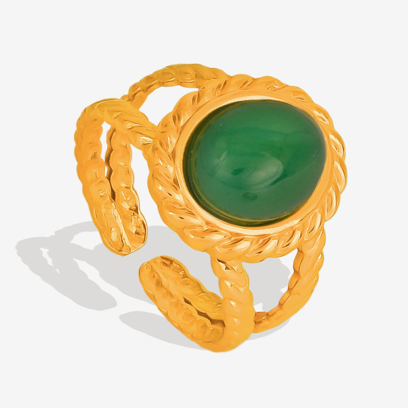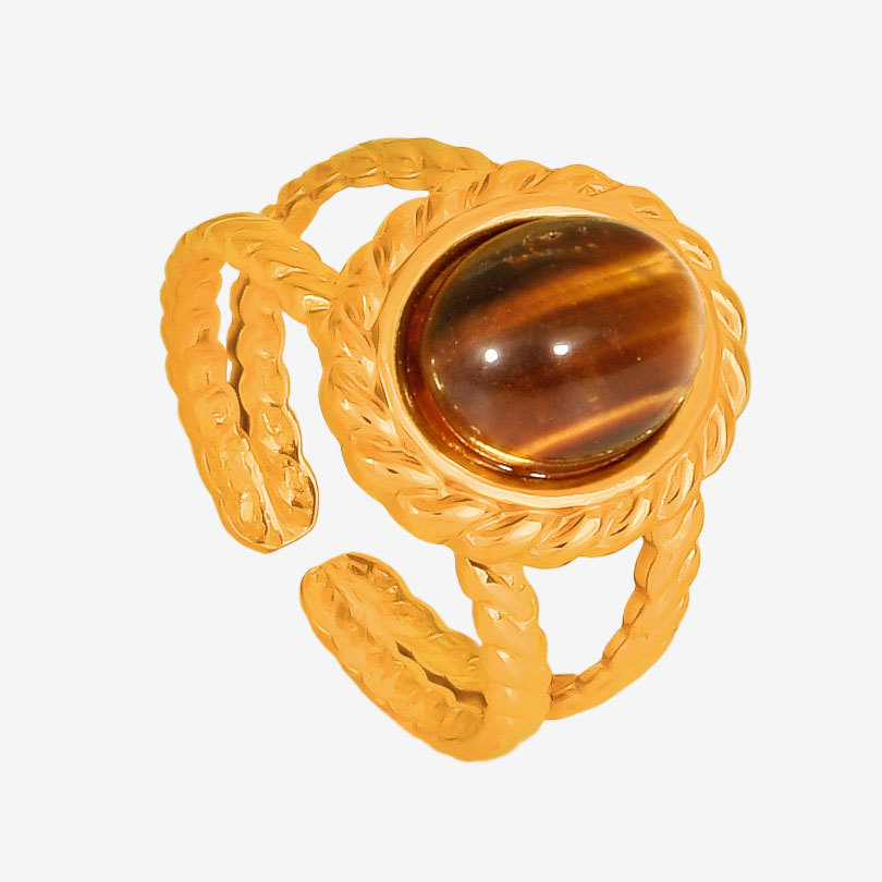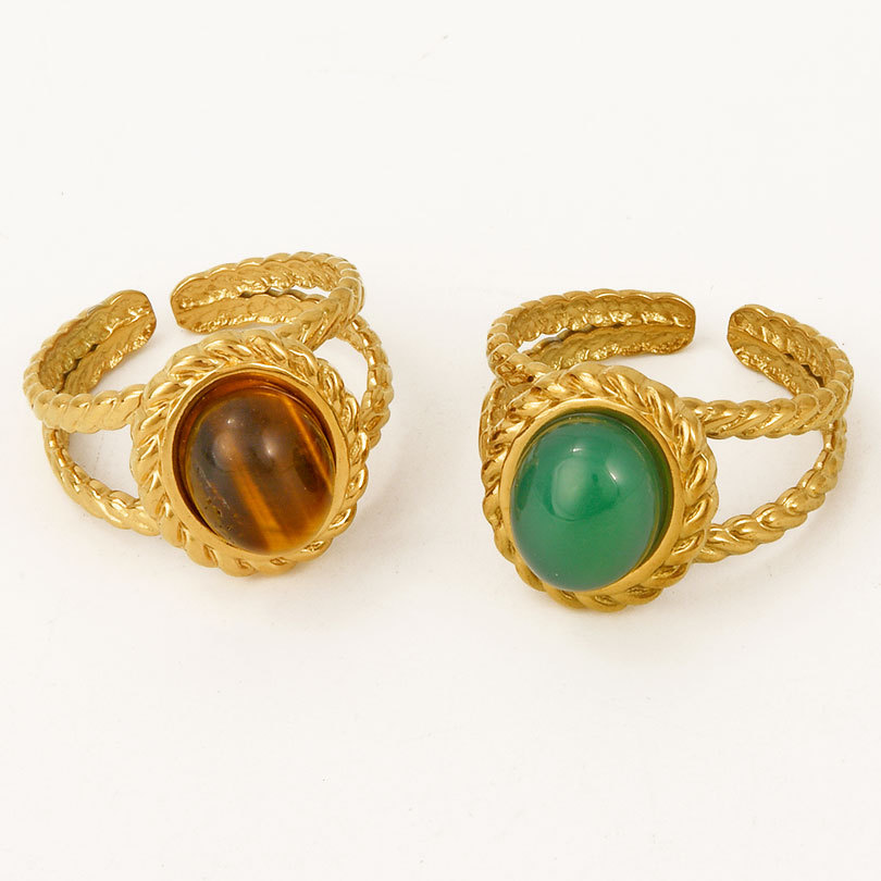 Gemstone Stainless Steel Finger Ring, 304 Stainless Steel, with Natural Stone, 18K gold plated, different materials for choice & Unisex & hollow, Sold By PC