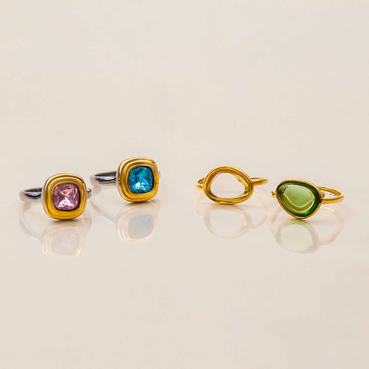 Gemstone Stainless Steel Finger Ring, 304 Stainless Steel, with Natural Stone, plated, different size for choice & different styles for choice & for woman & two tone, Sold By PC
