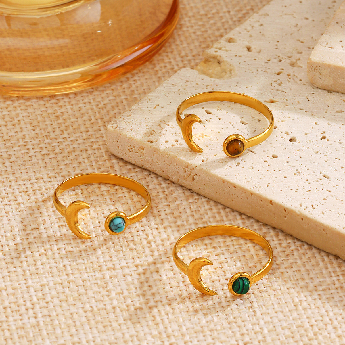Gemstone Stainless Steel Finger Ring, 304 Stainless Steel, with Natural Stone, 18K gold plated, fashion jewelry & different materials for choice & for woman, more colors for choice, Sold By PC