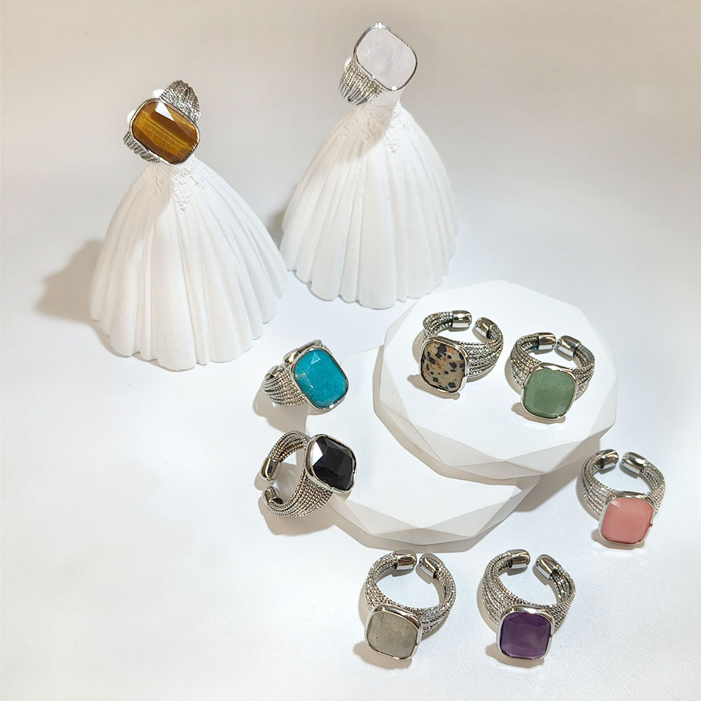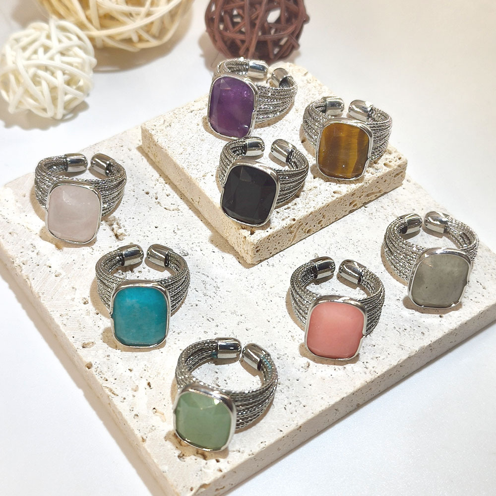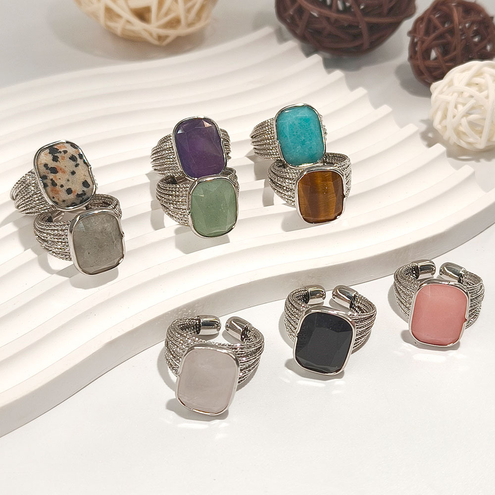 Gemstone Zinc Alloy Finger Ring, with Natural Stone, fashion jewelry & different materials for choice, more colors for choice, Sold By PC