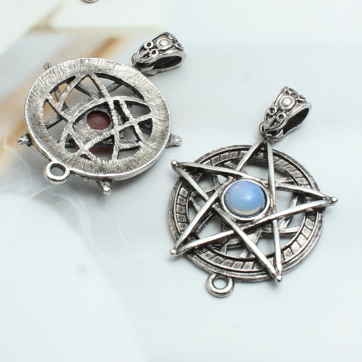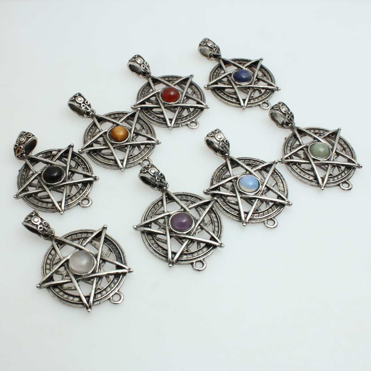 Gemstone Zinc Alloy Pendants, with Gemstone, pentagram, plated, vintage & DIY & different materials for choice, 30x43mm, Sold By PC