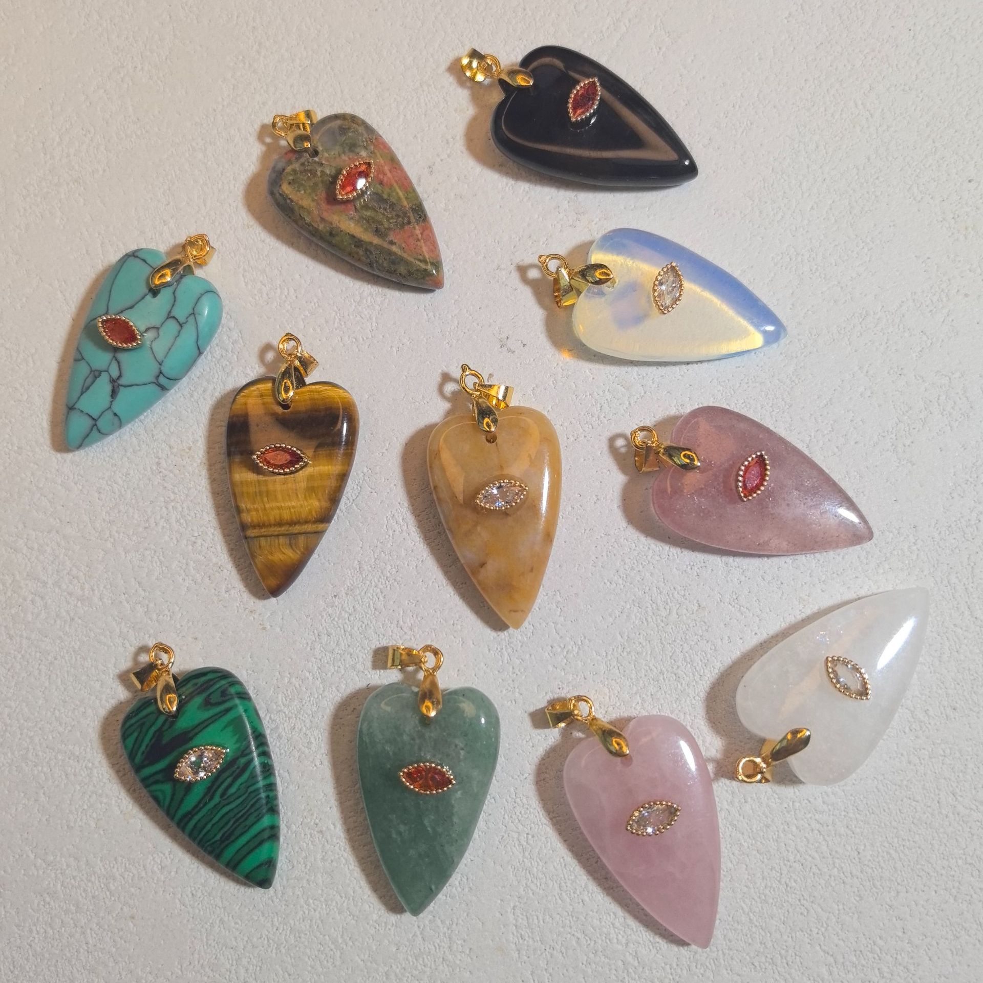 Gemstone Zinc Alloy Pendants, with Zinc Alloy, Evil Eye, polished, DIY & different materials for choice & micro pave cubic zirconia, 18x30mm, Sold By PC