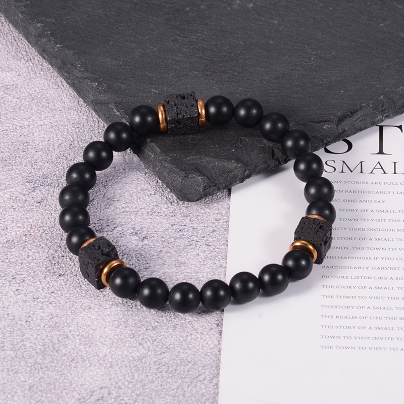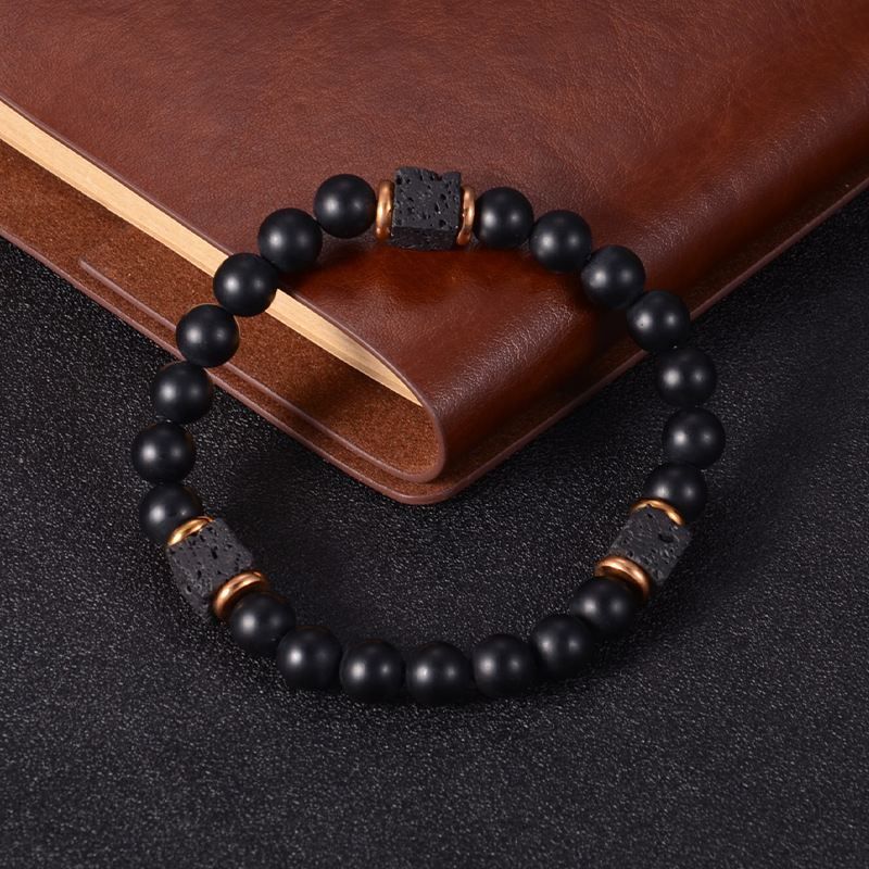 Zinc Alloy Bracelet, with Lava, gold color plated, Unisex & blacken, 8mm Approx 7.5 Inch