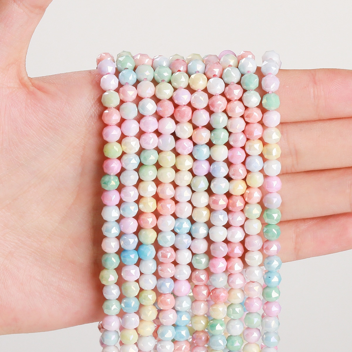 Glass Beads, Round, plated, DIY & faceted, multi-colored, 6mm, Approx 65PCs/Strand, Sold By Strand