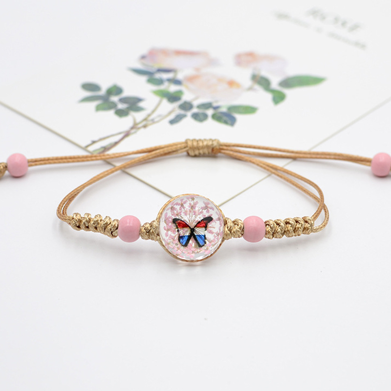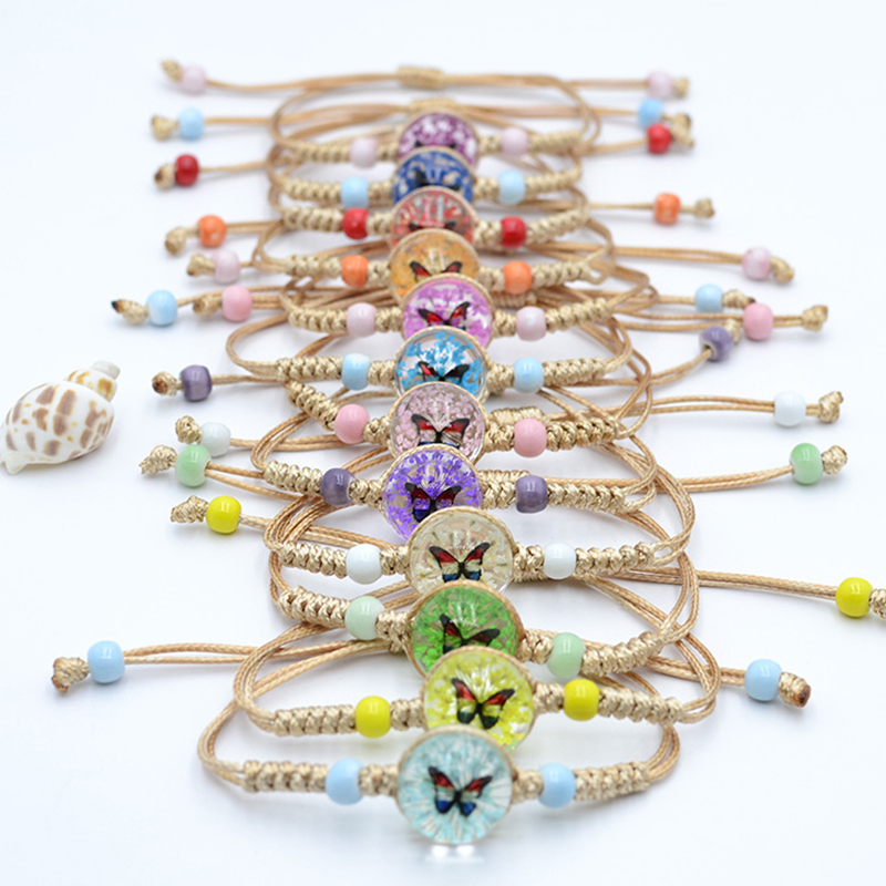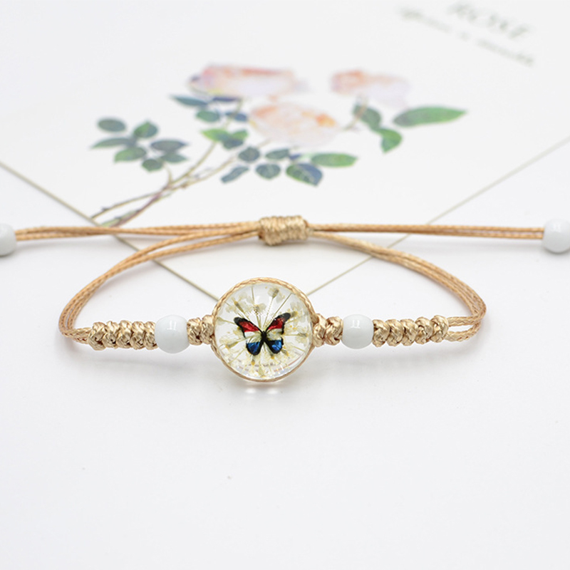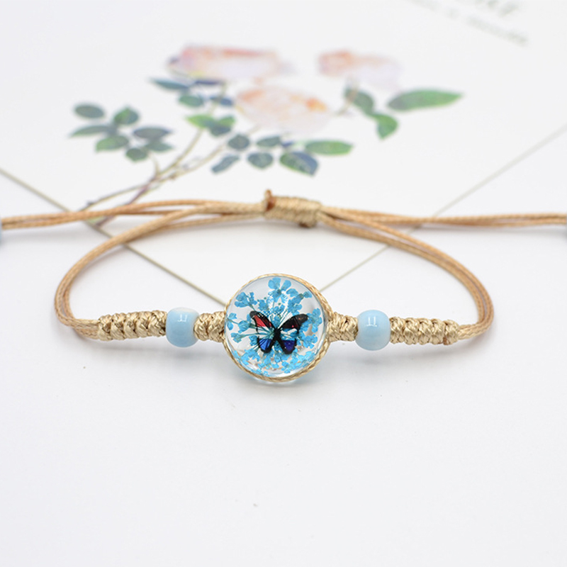 Glass Bracelet, with Dried Flower & Lace & Porcelain & Wax Cord, Butterfly, handmade, folk style & for woman, more colors for choice, Length:Approx 6-10 Inch, Sold By PC