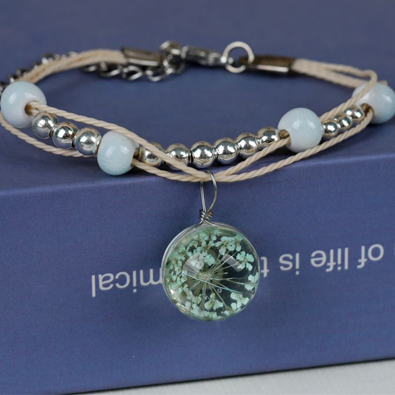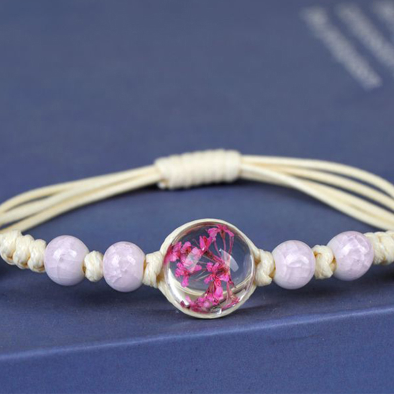 Glass Bracelet, with Dried Flower & Polyester Cord & Zinc Alloy, handmade, different styles for choice & for woman, Length:Approx 6-10 Inch, Sold By PC
