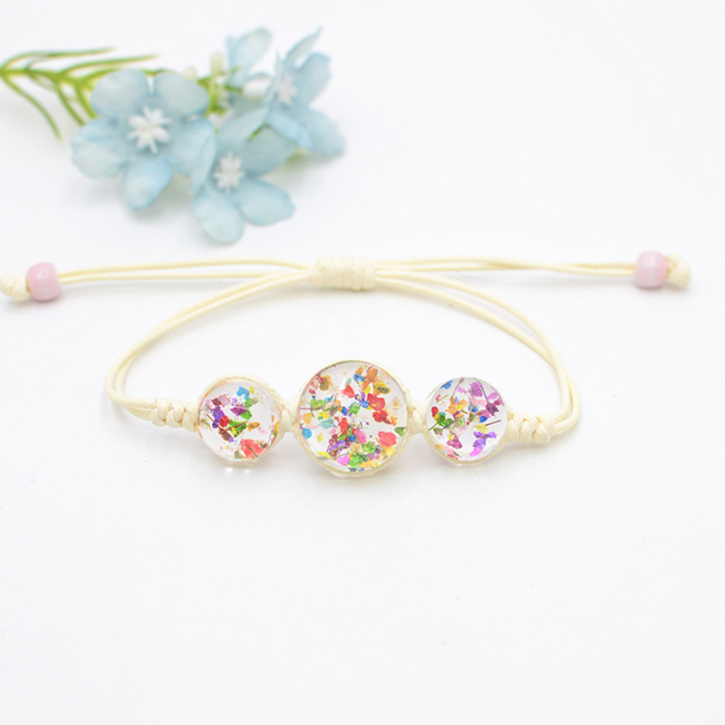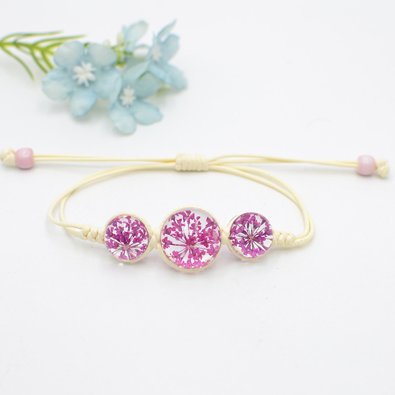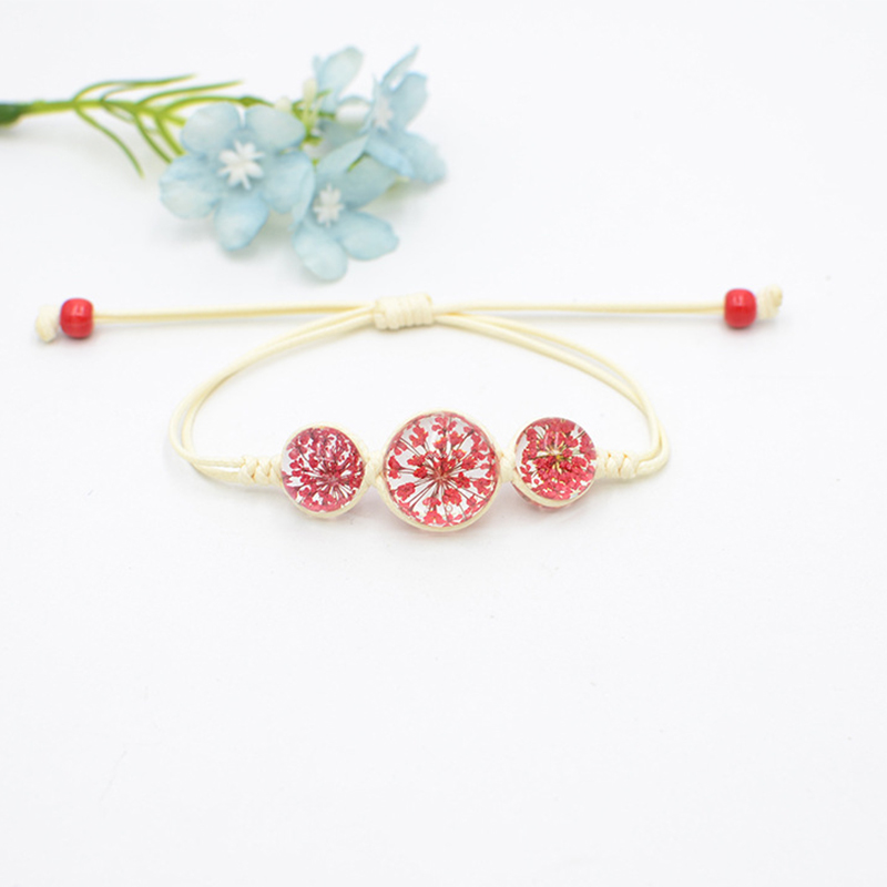 Glass Bracelet, with Dried Flower & Porcelain & Wax Cord, Flower, handmade, fashion jewelry & for woman, more colors for choice, Length:Approx 6-10 Inch, Sold By PC