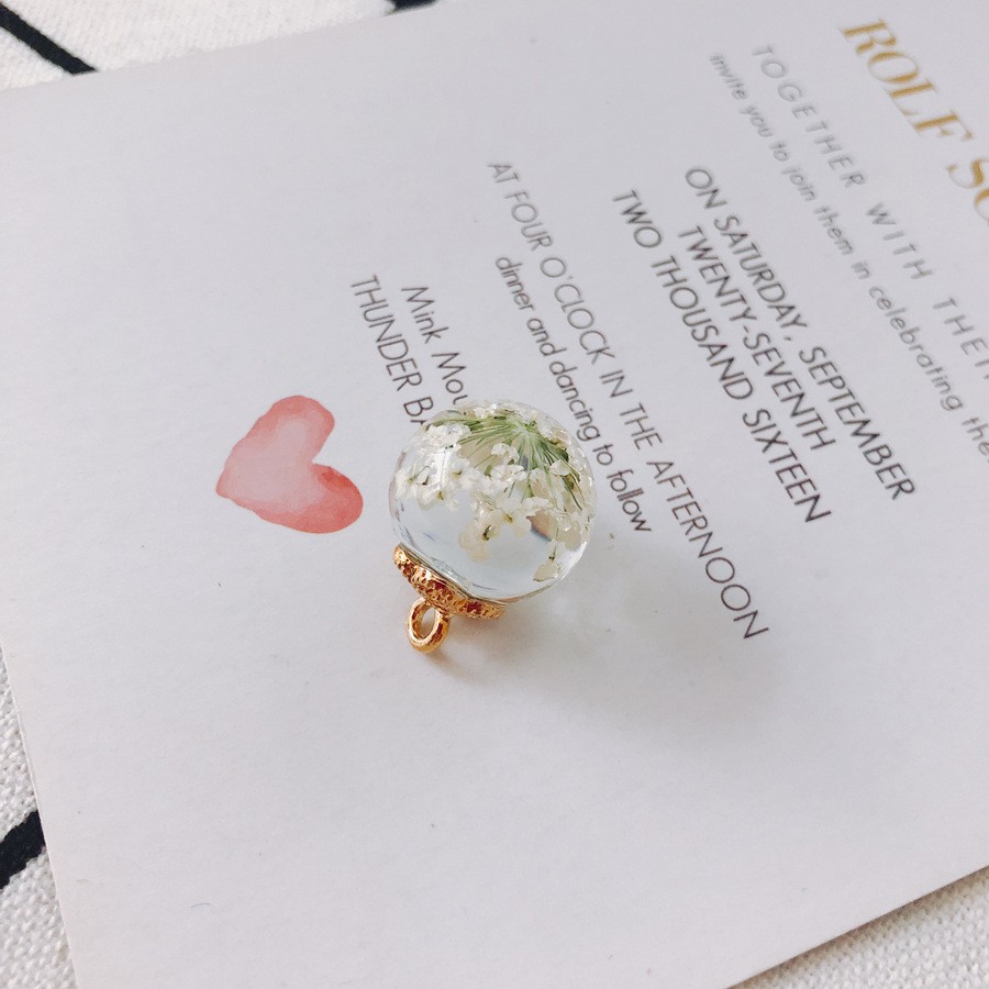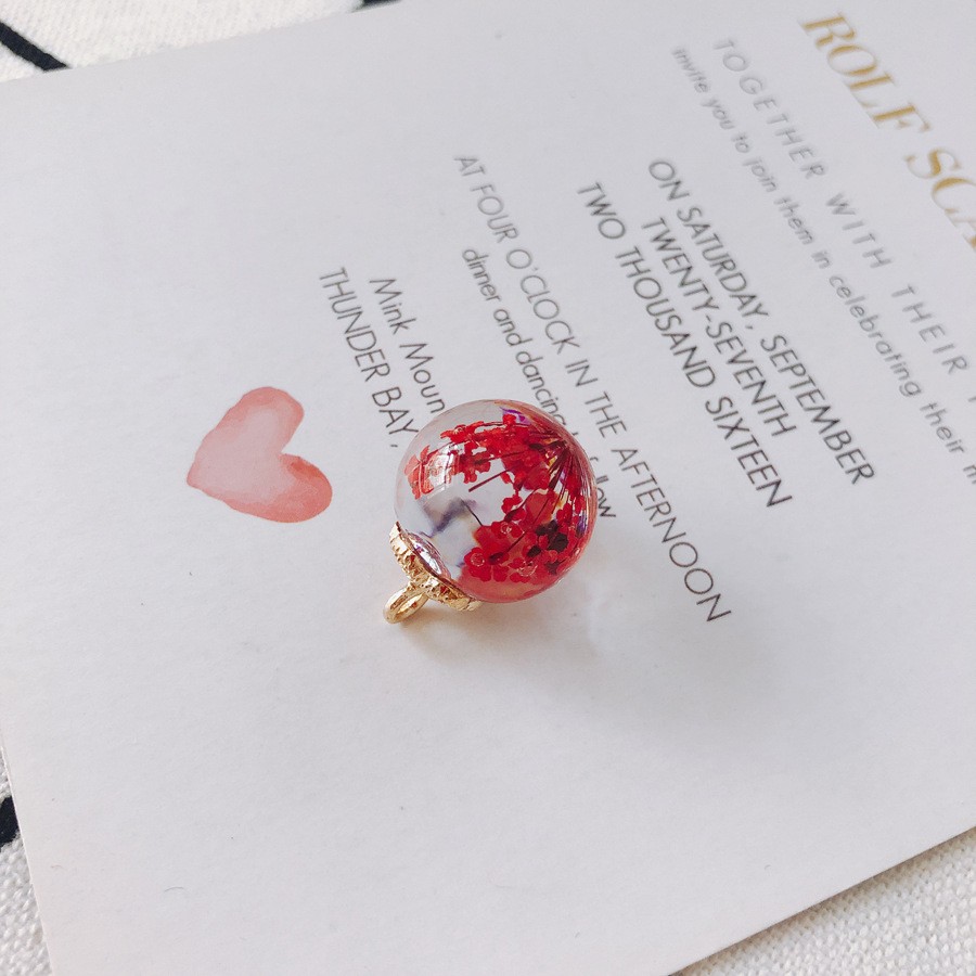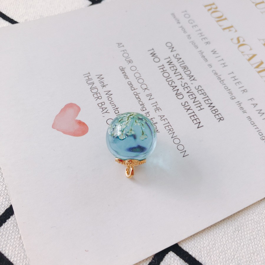 Glass Brass Pendants, with Dried Flower & Brass, DIY, 10PCs/Bag, Sold By Bag