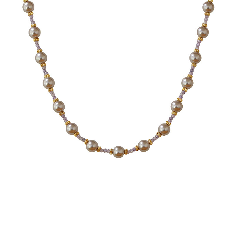 Glass Pearl Necklace, Brass, with Glass Beads & Crystal, with 5.5cm extender chain, 18K gold plated, fashion jewelry & for woman, Pearl 6mm, Length:40 cm, Sold By PC