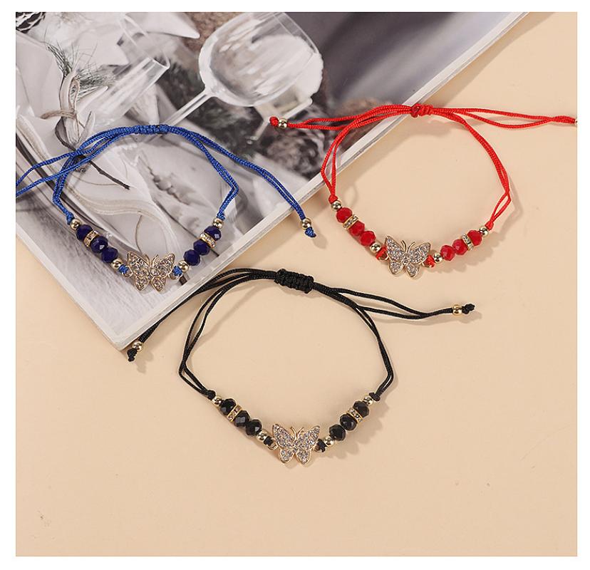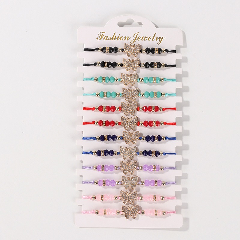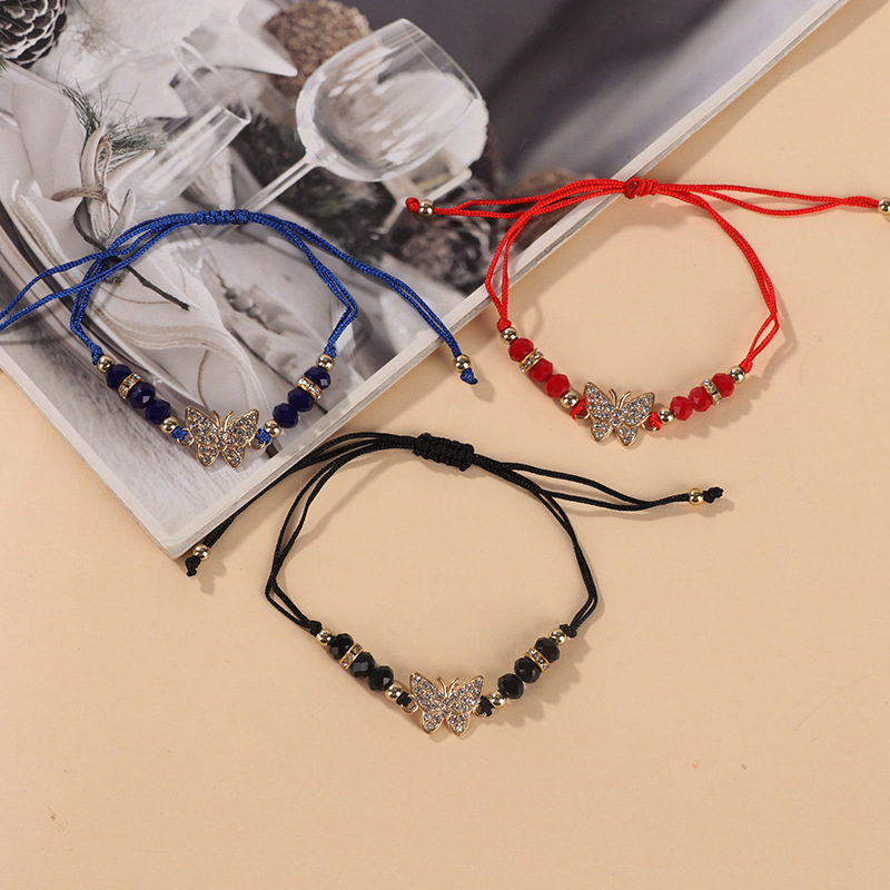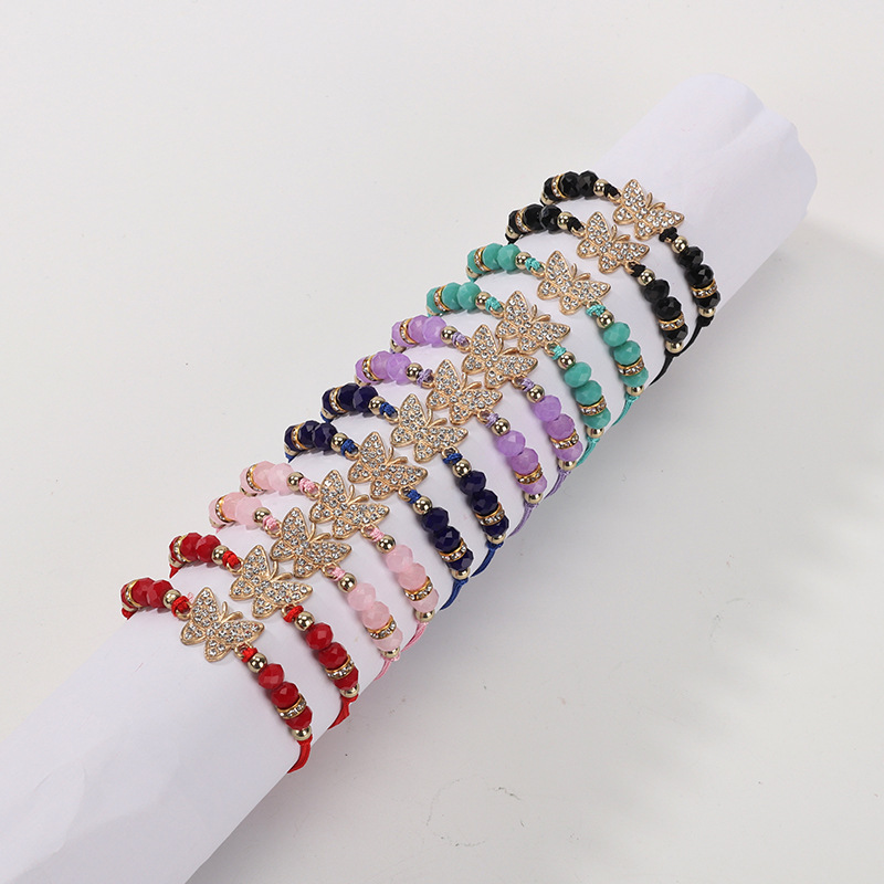 Glass Pearl Zinc Alloy Bracelets, with Knot Cord & Glass, Butterfly, gold color plated, Adjustable & for woman & with rhinestone, mixed colors, Length:16-28 cm, Sold By Set