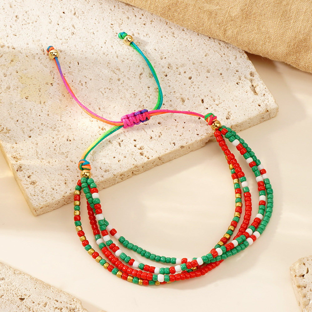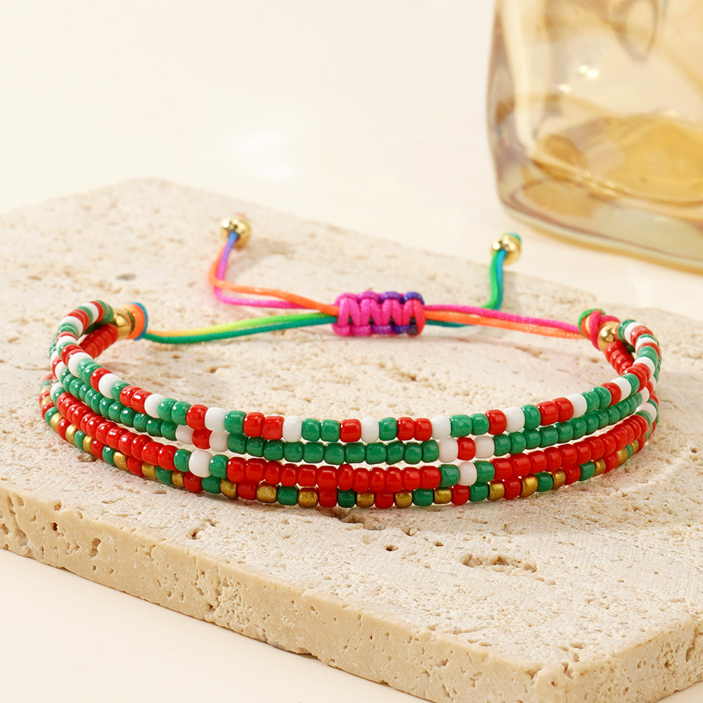 Glass Seed Beads Bracelets, with Waxed Nylon Cord & Wool & Zinc Alloy Approx 6.5 Inch