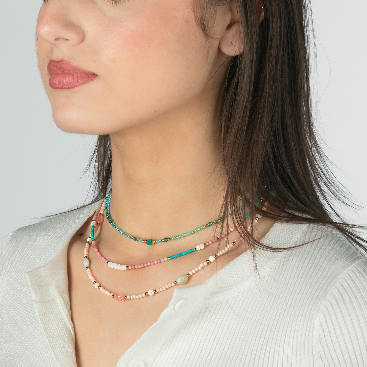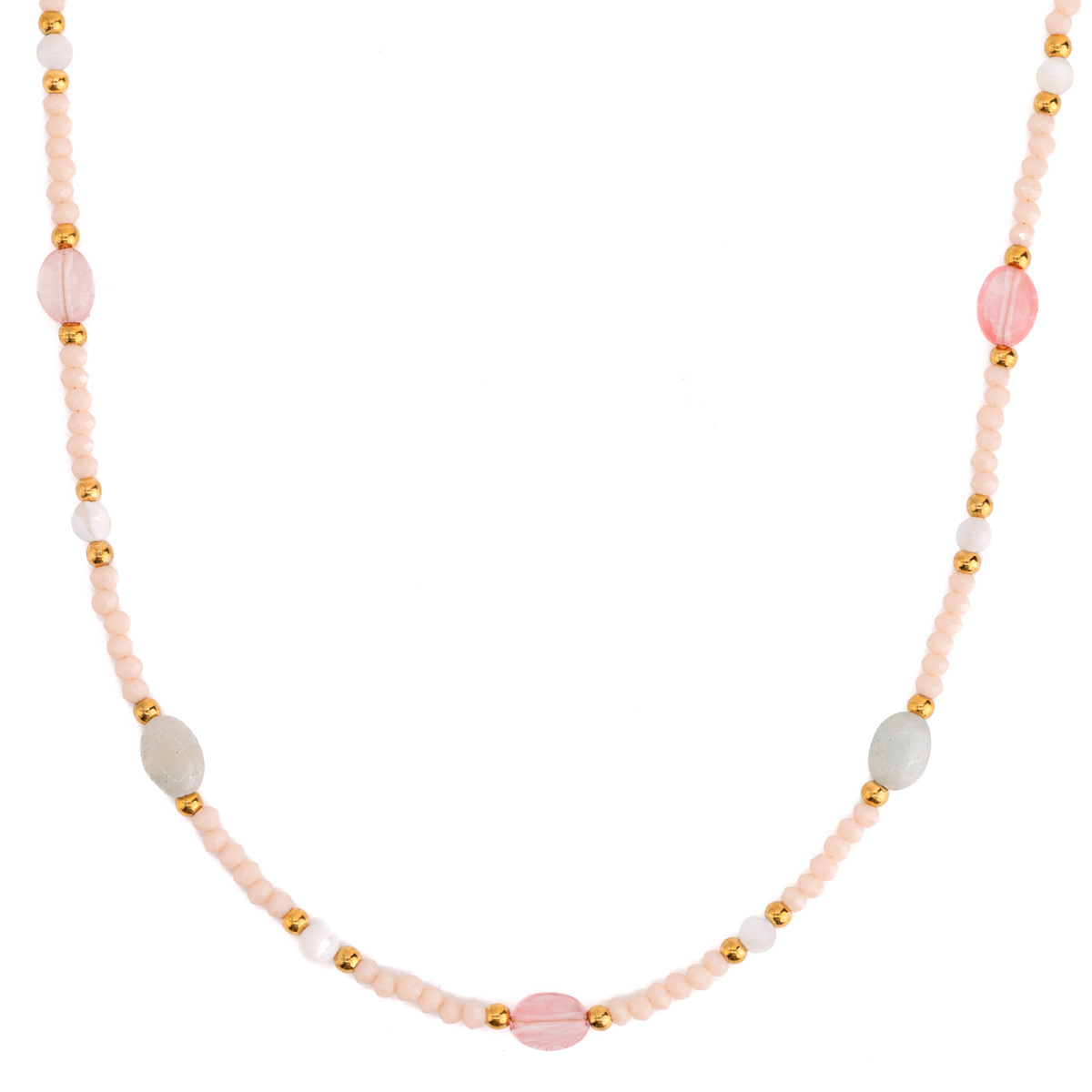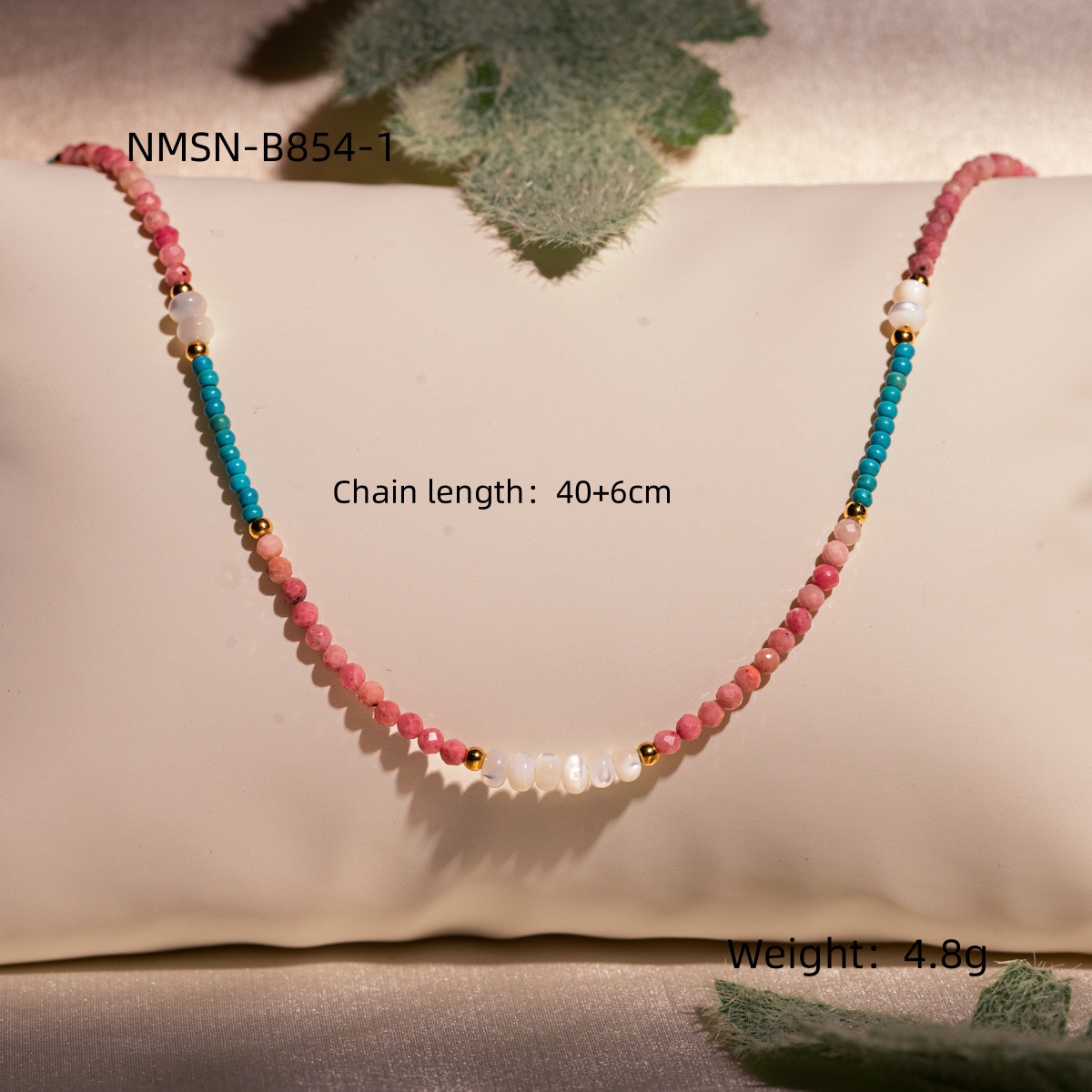 Glass Seed Beads Necklace, 304 Stainless Steel, with Seedbead & Natural Stone, 18K gold plated, fashion jewelry & different styles for choice & for woman, multi-colored, Sold By PC