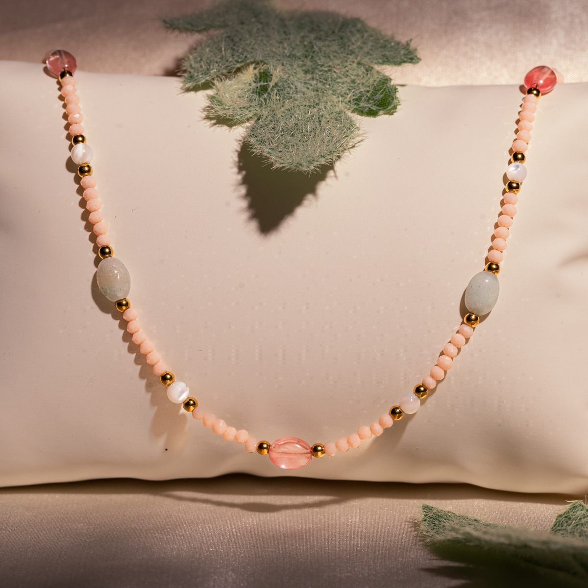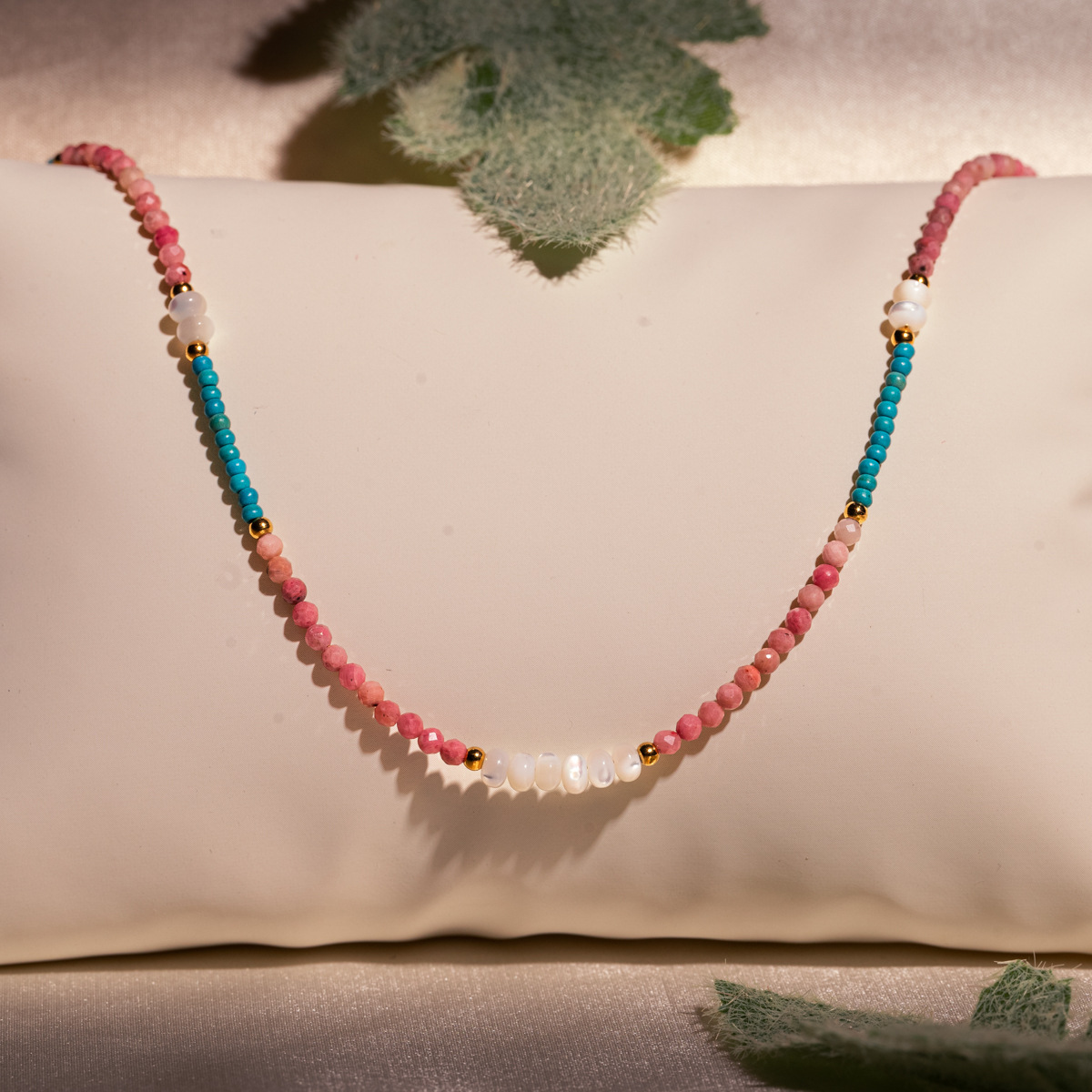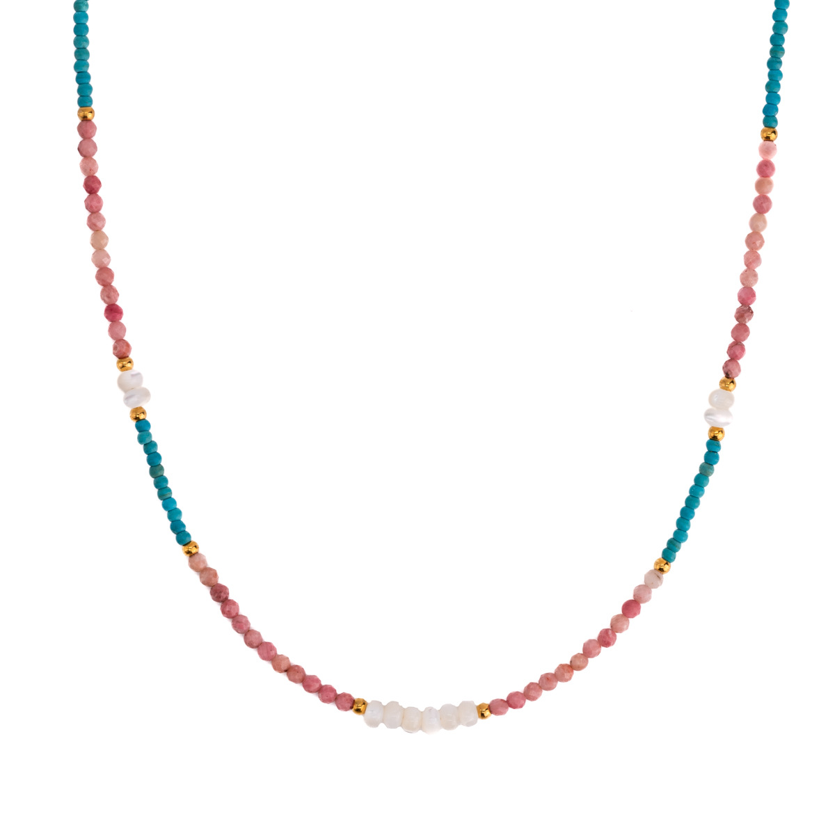 Glass Seed Beads Necklace, 304 Stainless Steel, with Seedbead & Natural Stone, 18K gold plated, fashion jewelry & different styles for choice & for woman, multi-colored, Sold By PC