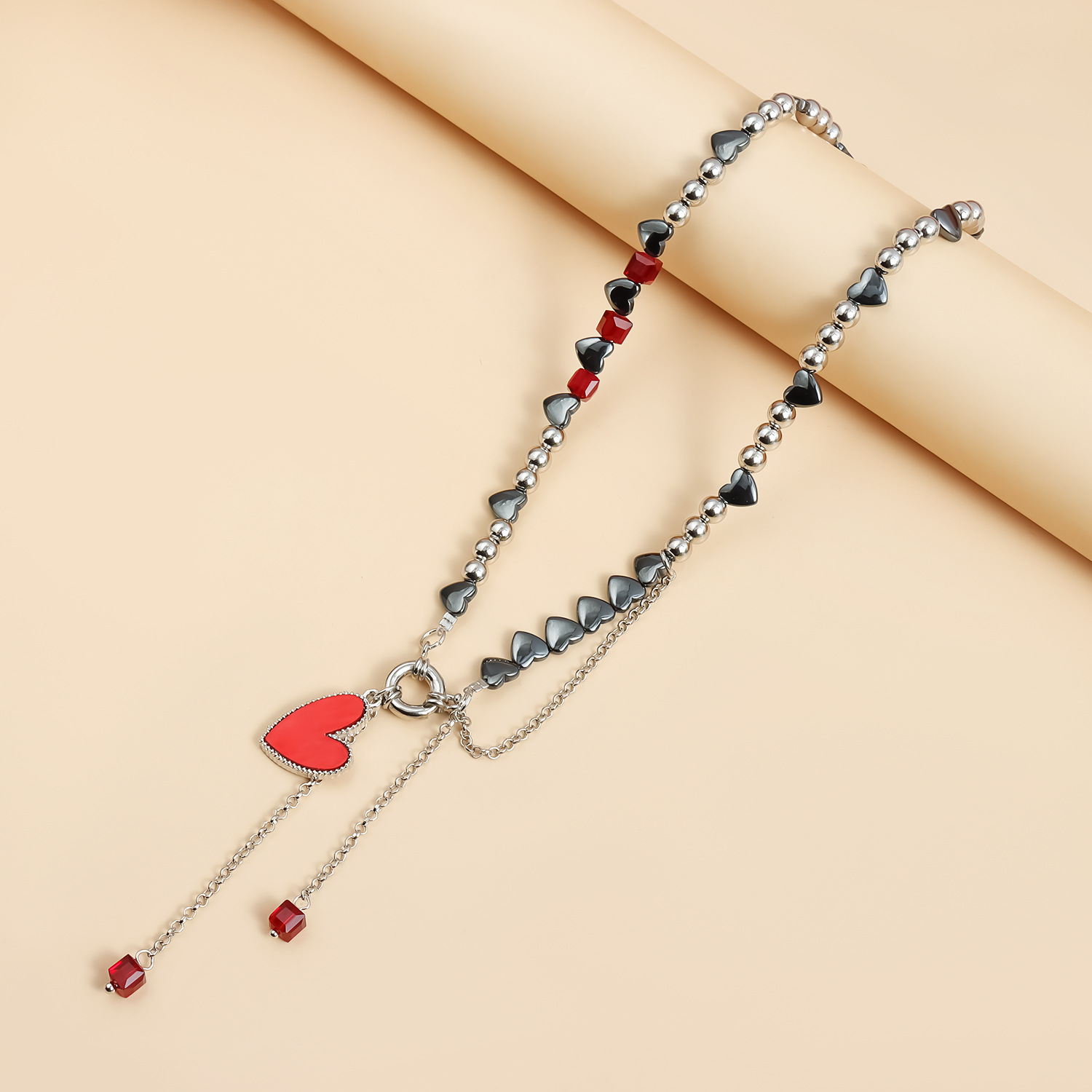 Glass Zinc Alloy Necklace, with Hematite & Glass & Acrylic, plated, fashion jewelry & for woman, original color, Sold By PC