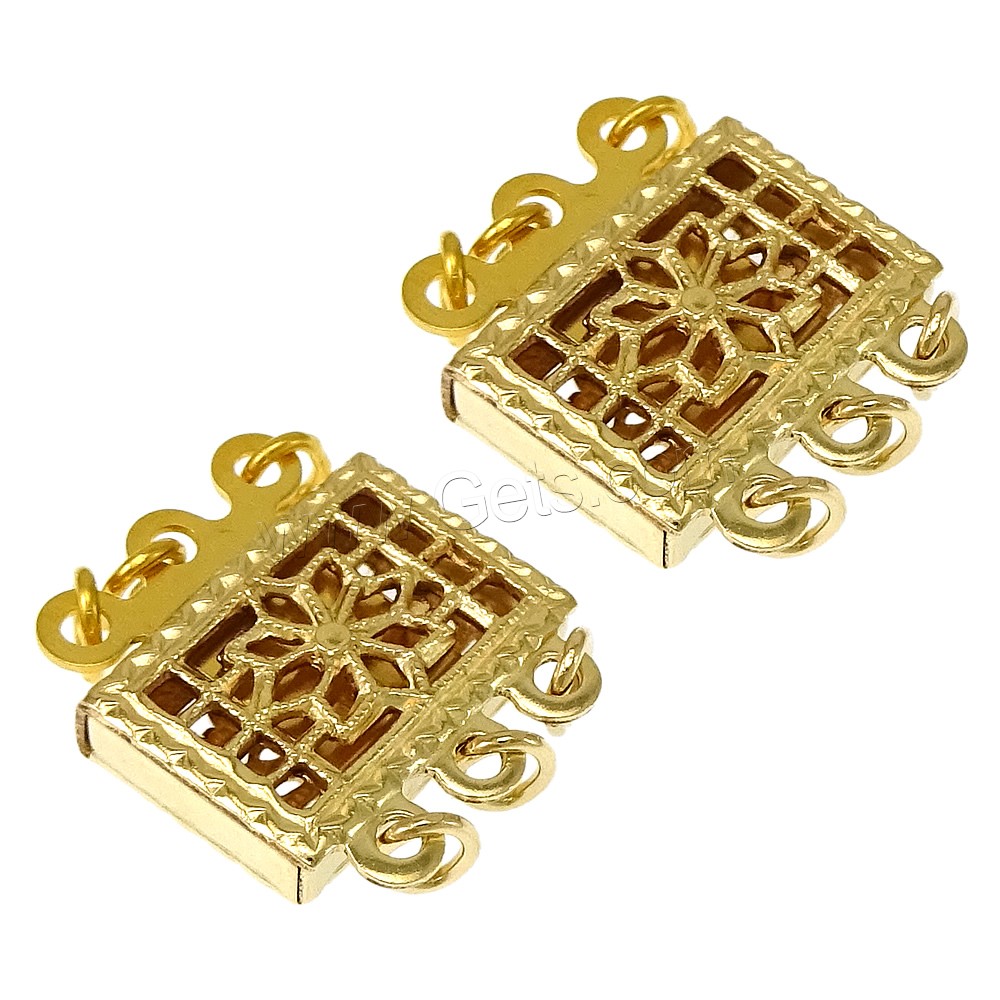 Gold Filled Box Clasp, Rectangle, 14K gold-filled & 3-strand, 11.5x10.5x4mm, Hole:Approx 1mm, Sold By PC