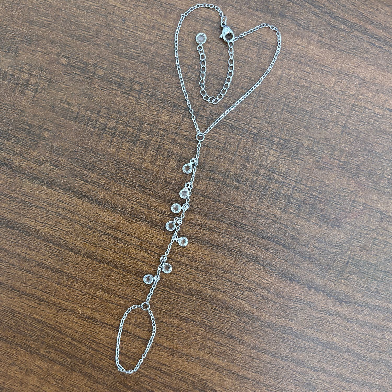 Gothic Bracelet Ring, Lace, with Satin Ribbon & Crystal & Zinc Alloy, with 1.5Inch extender chain, Flower, plated, adjustable & faceted, nickel, lead & cadmium free US Ring  Approx 6 Inch