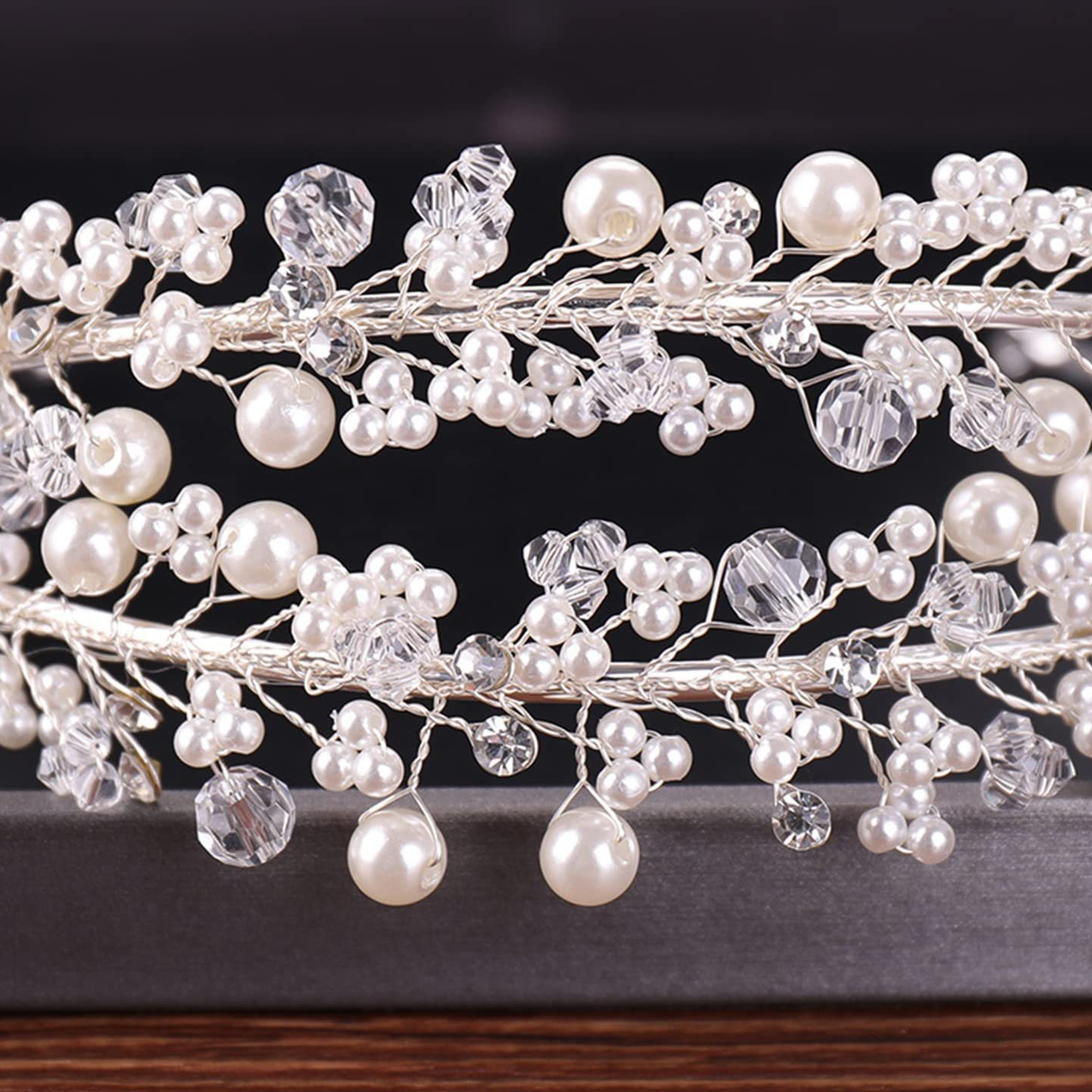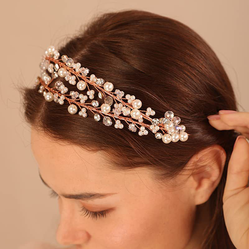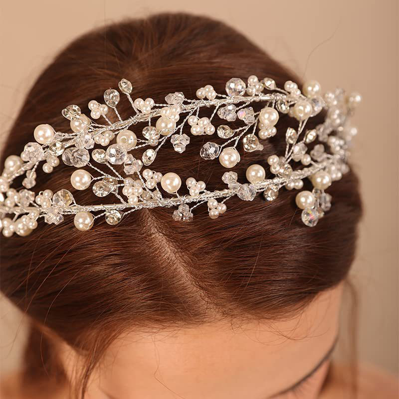 Hair Bands, Plastic Pearl, with brass wire & Crystal, handmade, Double Layer & fashion jewelry & for woman, more colors for choice, Diameter :18cm., Sold By PC