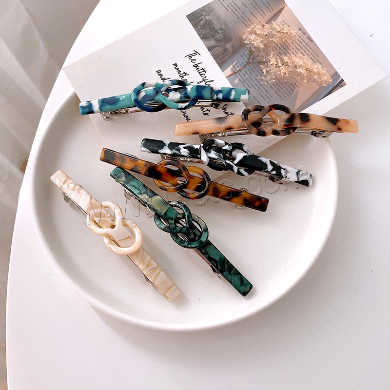 Hair Barrettes, Acetate, with Zinc Alloy, stoving varnish, gingham & for children & different styles for choice, more colors for choice, 86x6mm, Sold By PC