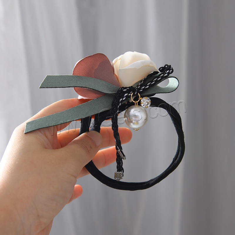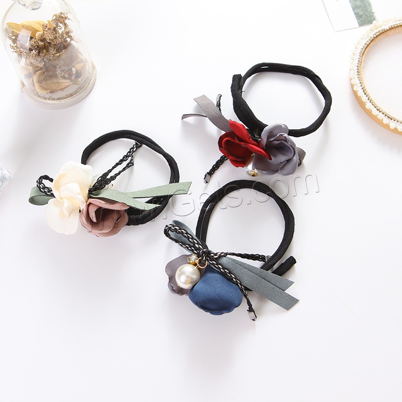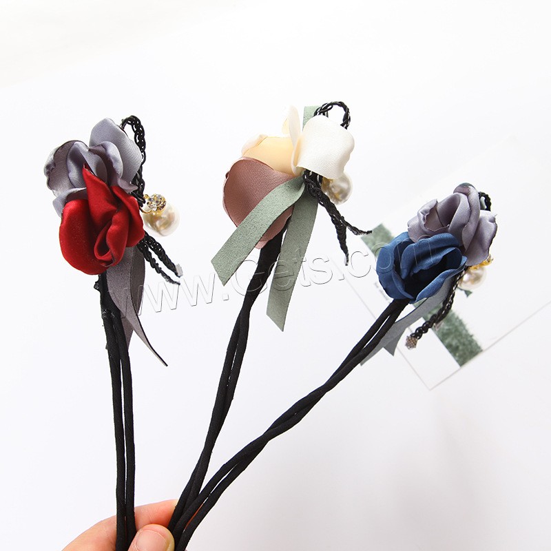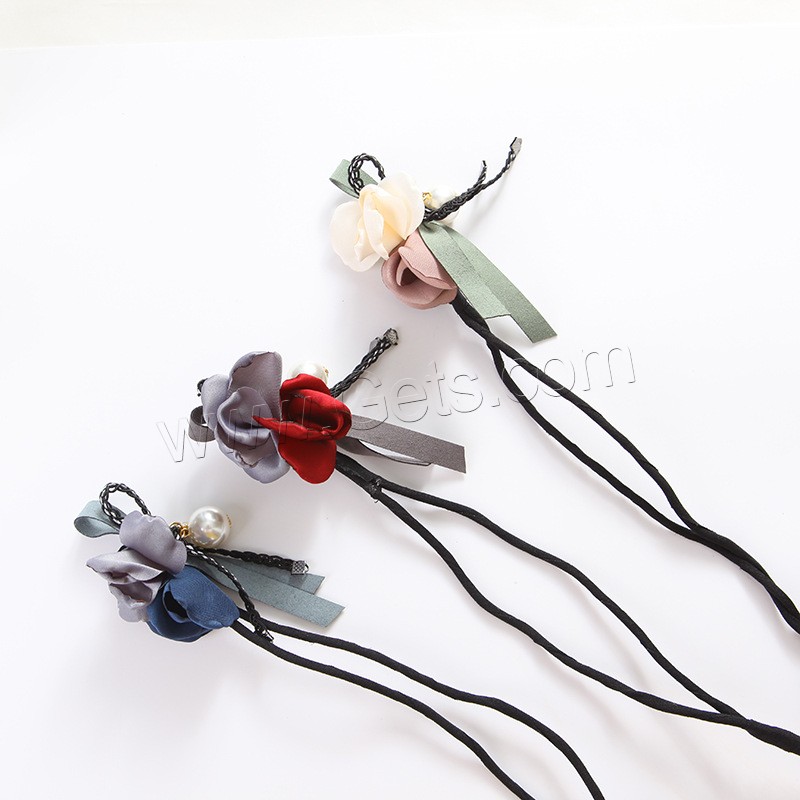 Hair Bun Maker, Cloth, with ABS Plastic Pearl & Zinc Alloy, Flower, with rhinestone, more colors for choice, 250mm, 3PCs/Bag, Sold By Bag