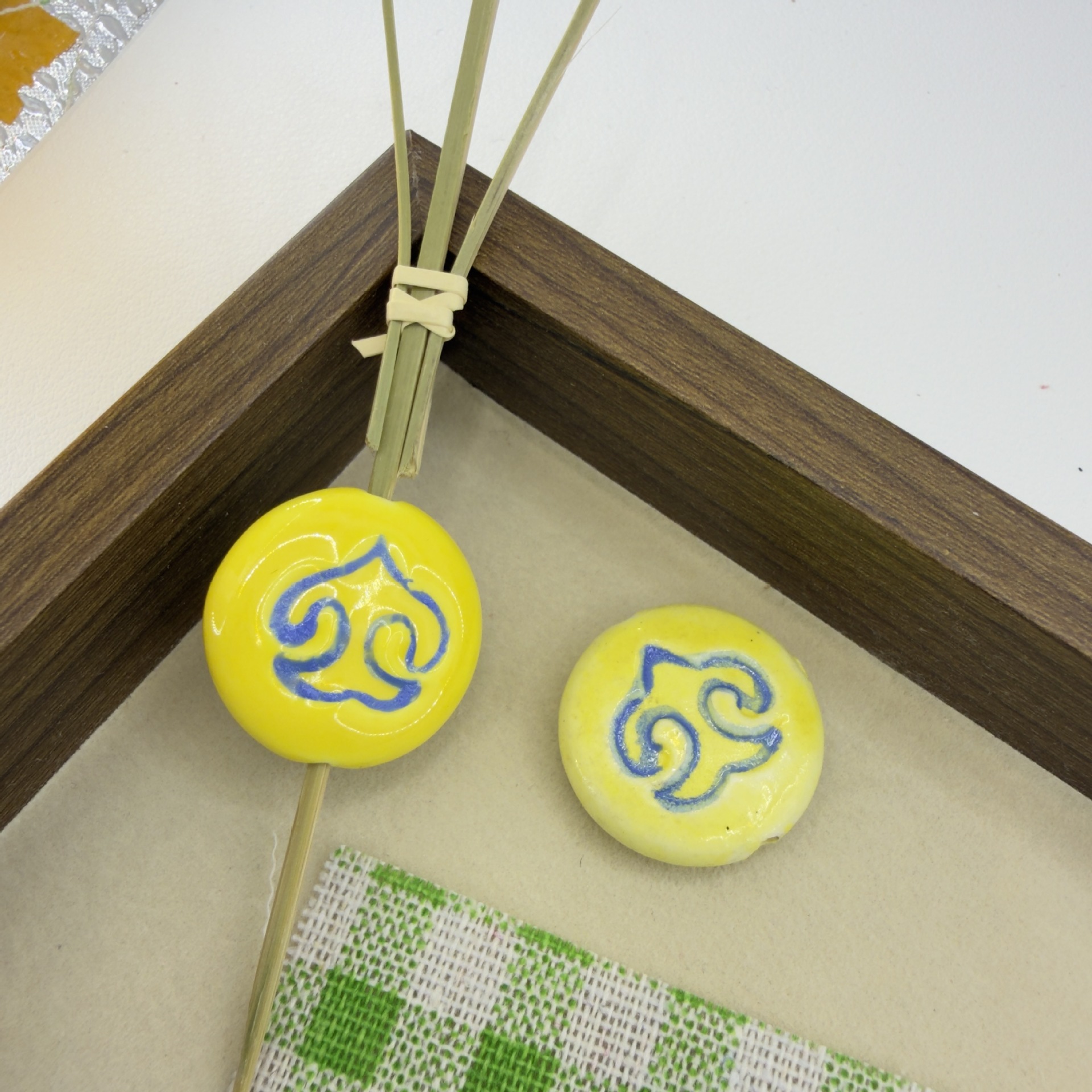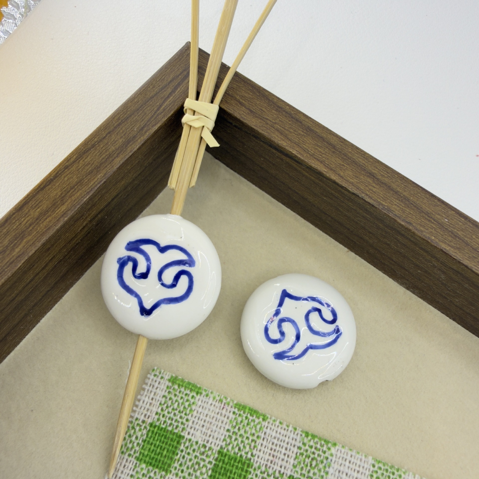 Hand Drawing Porcelain Beads, Flat Round, DIY & double-sided, more colors for choice, 24.5x8mm, Hole:Approx 2mm, 100PCs/Bag, Sold By Bag