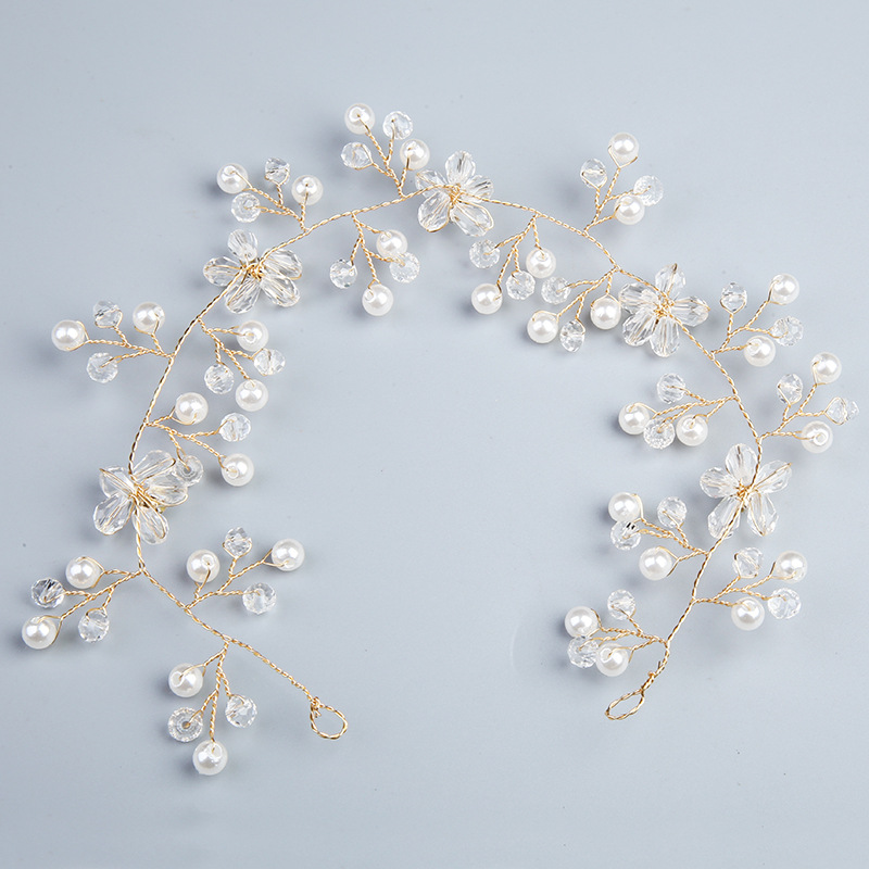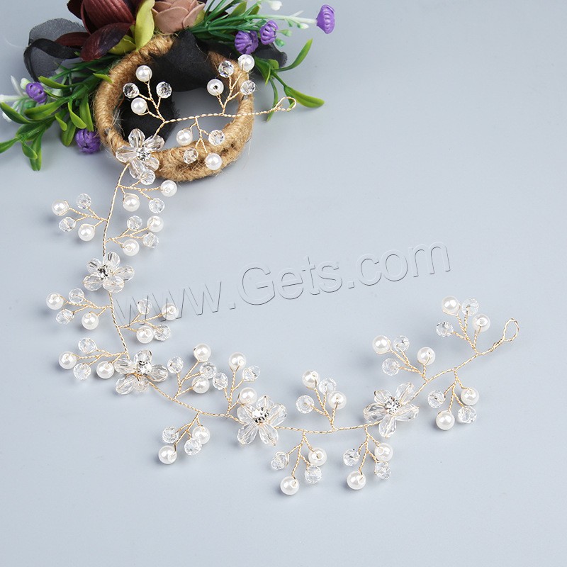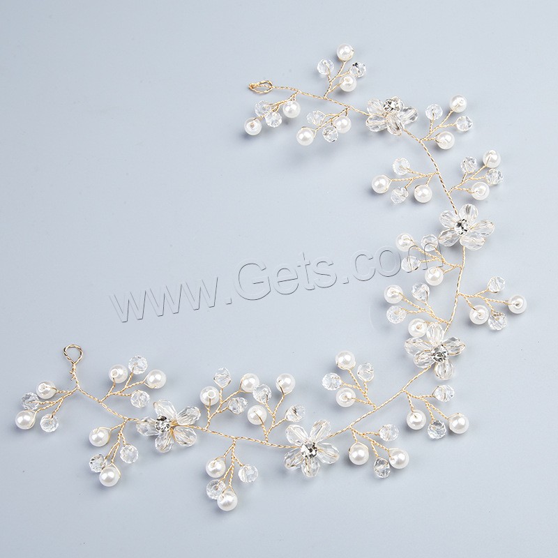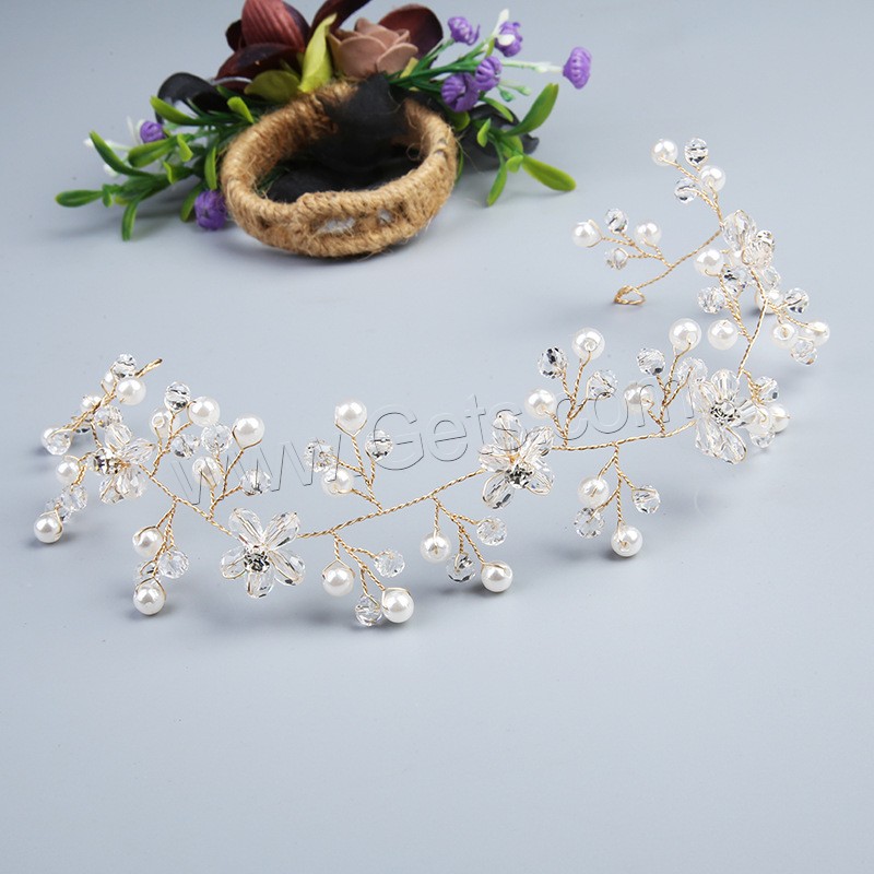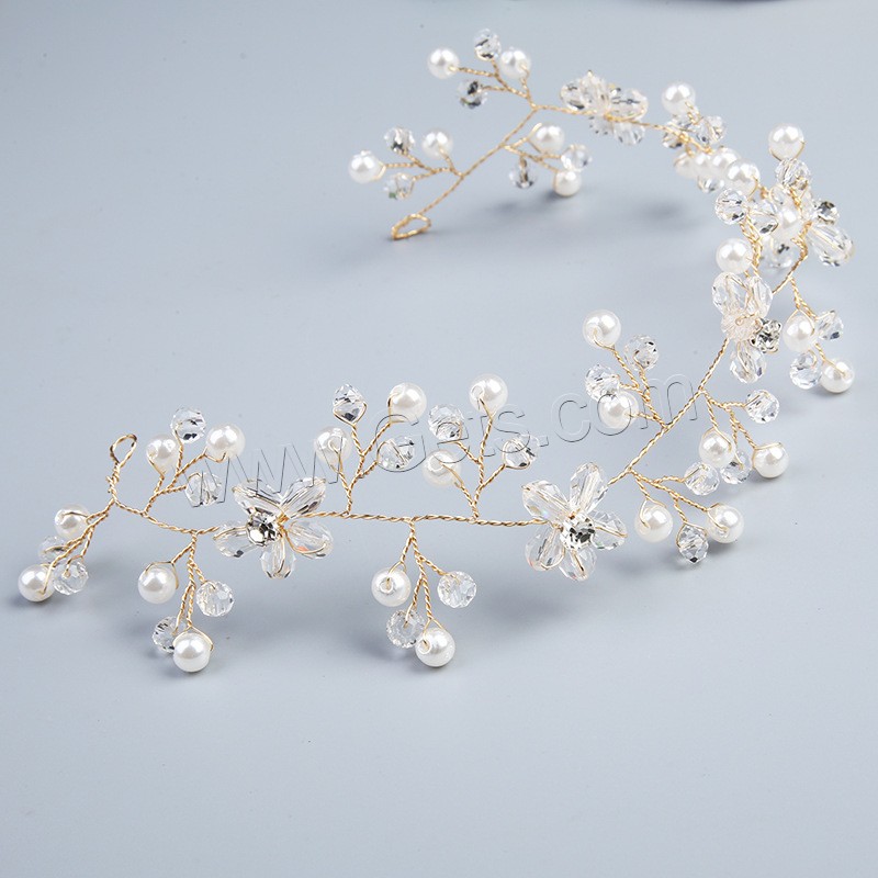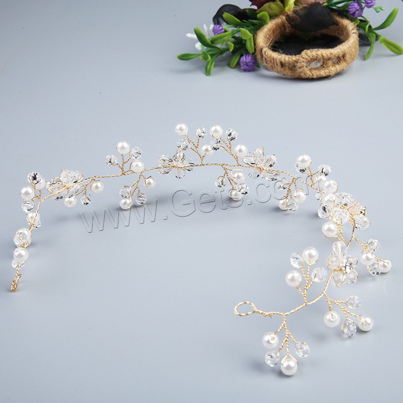 Headband, Brass, with Plastic Pearl, fashion jewelry & for woman & with rhinestone, golden, 300x45x10mm, Sold By PC