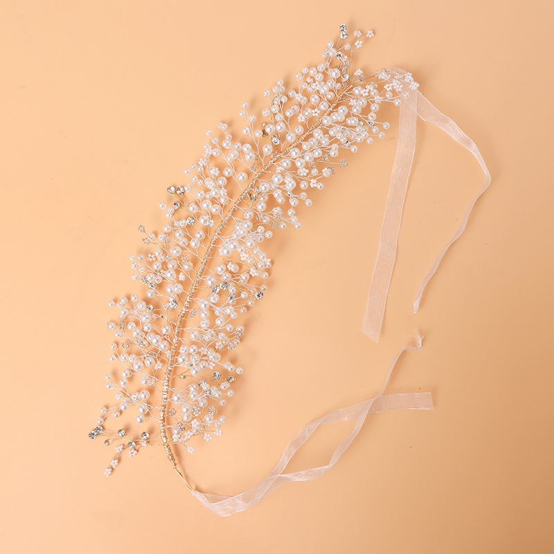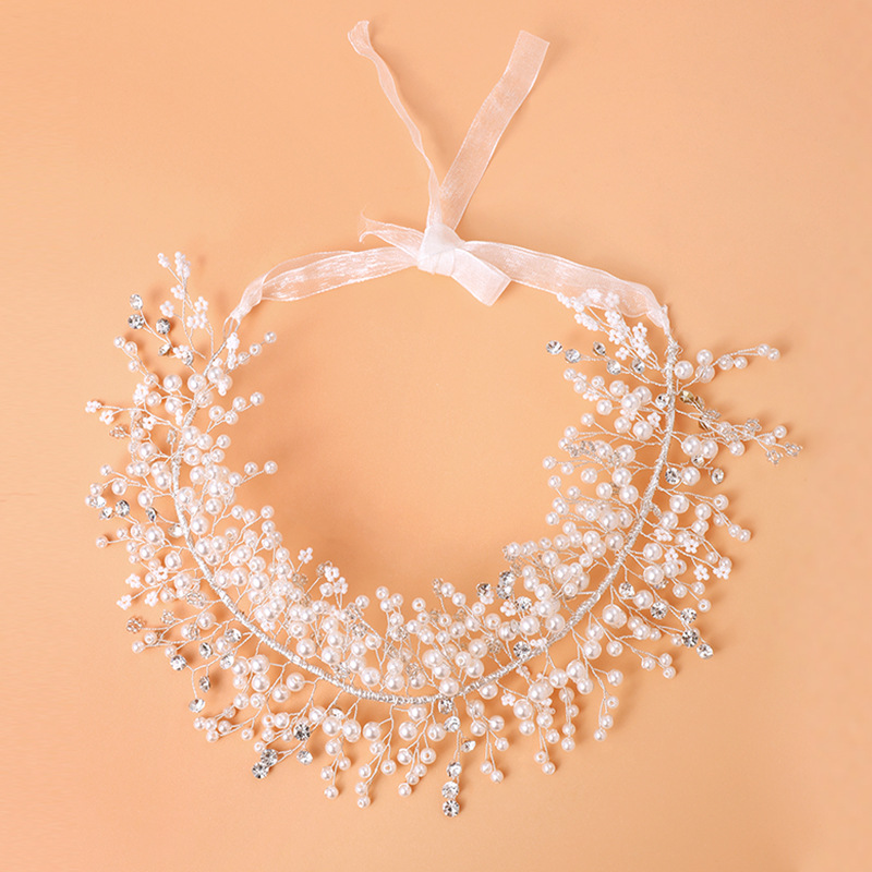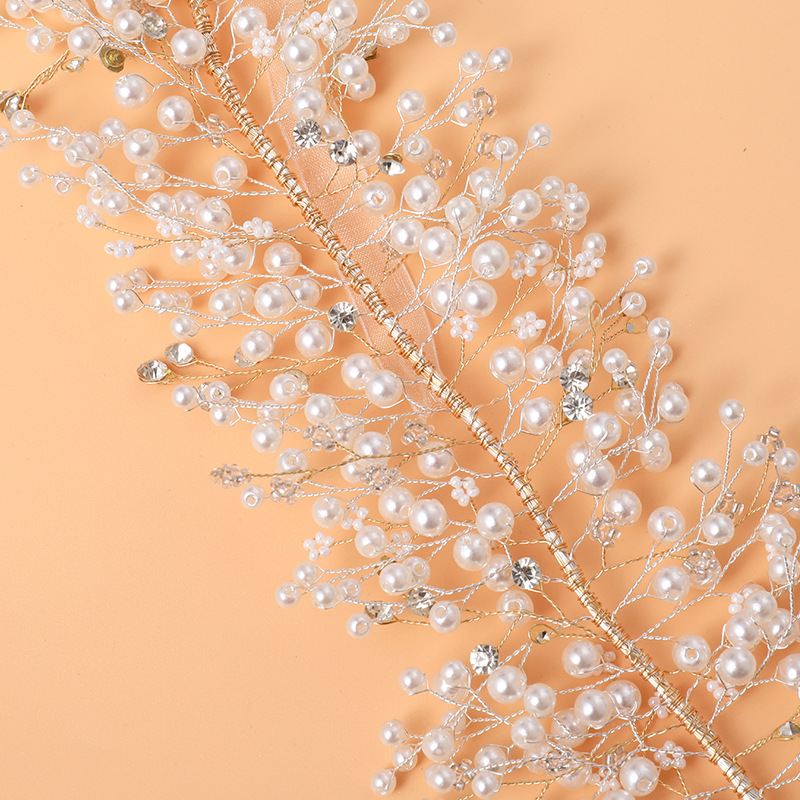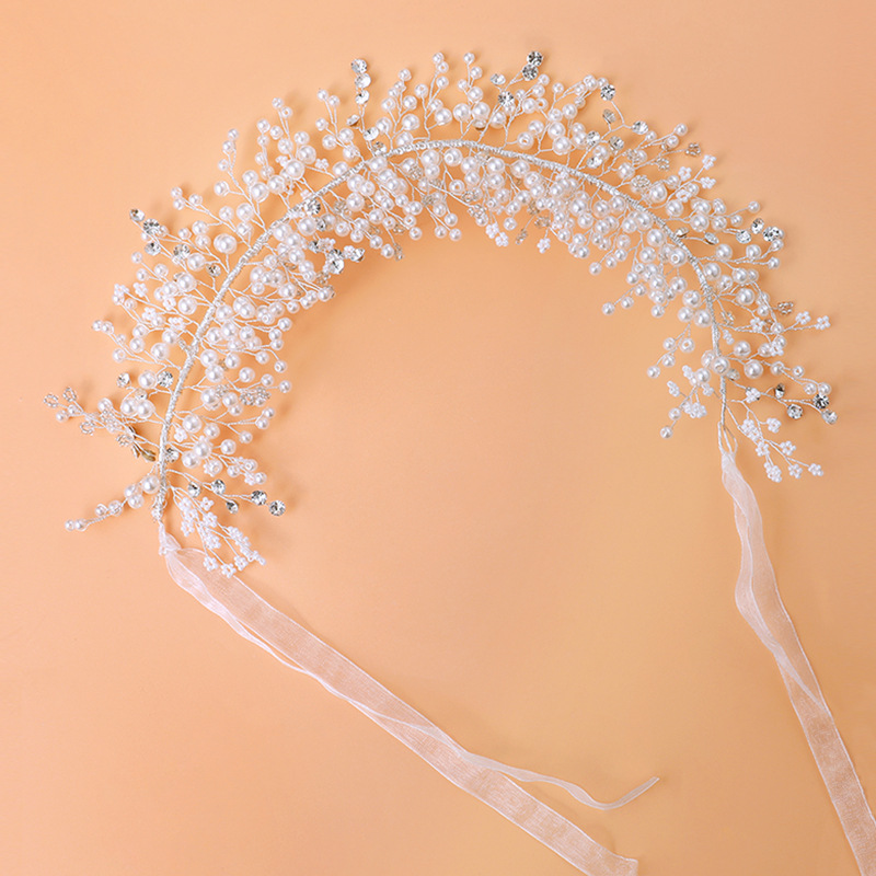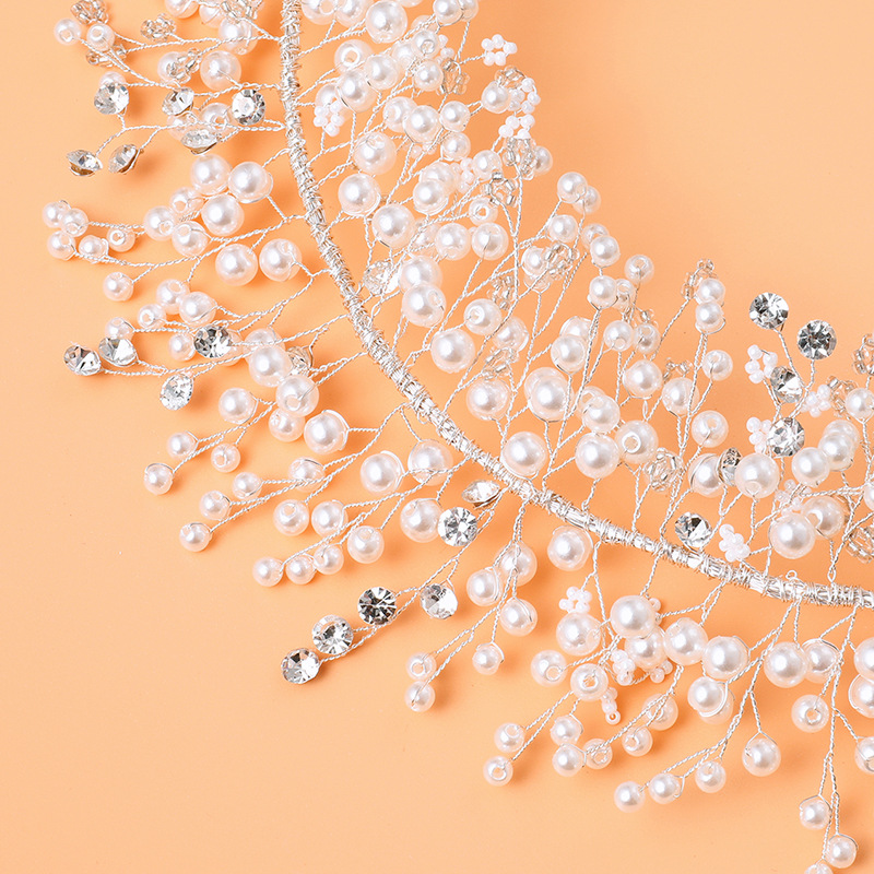 Headband, Zinc Alloy, with brass wire & Crystal & Plastic Pearl, handmade, fashion jewelry & for woman, silver color, 320x80mm, Sold By PC